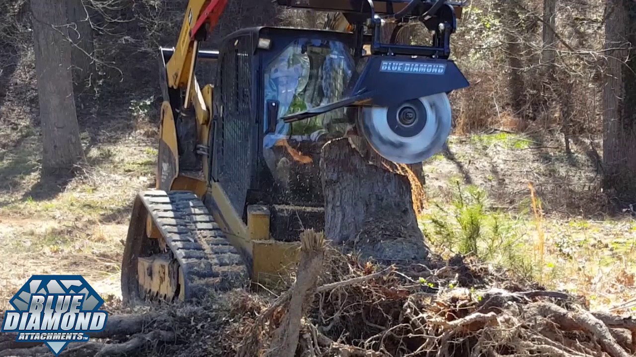 The Blue Diamond® Stump Grinder has it all: the highest torque in its class, compact size, cuts in forward and reverse, and provides great visibility! Using an extremely durable piston motor and Greenteeth® set up, this extreme duty stump grinder will eat through the most demanding jobs. A skid steer is limited in its ability to produce hydraulic HP, so this attachment is engineered to turn every bit of power available into performance. It can cut while moving in forward or reverse and keep RPM’s down in some applications, saving time and fuel. Spend less time on each stump and increase your profitability!