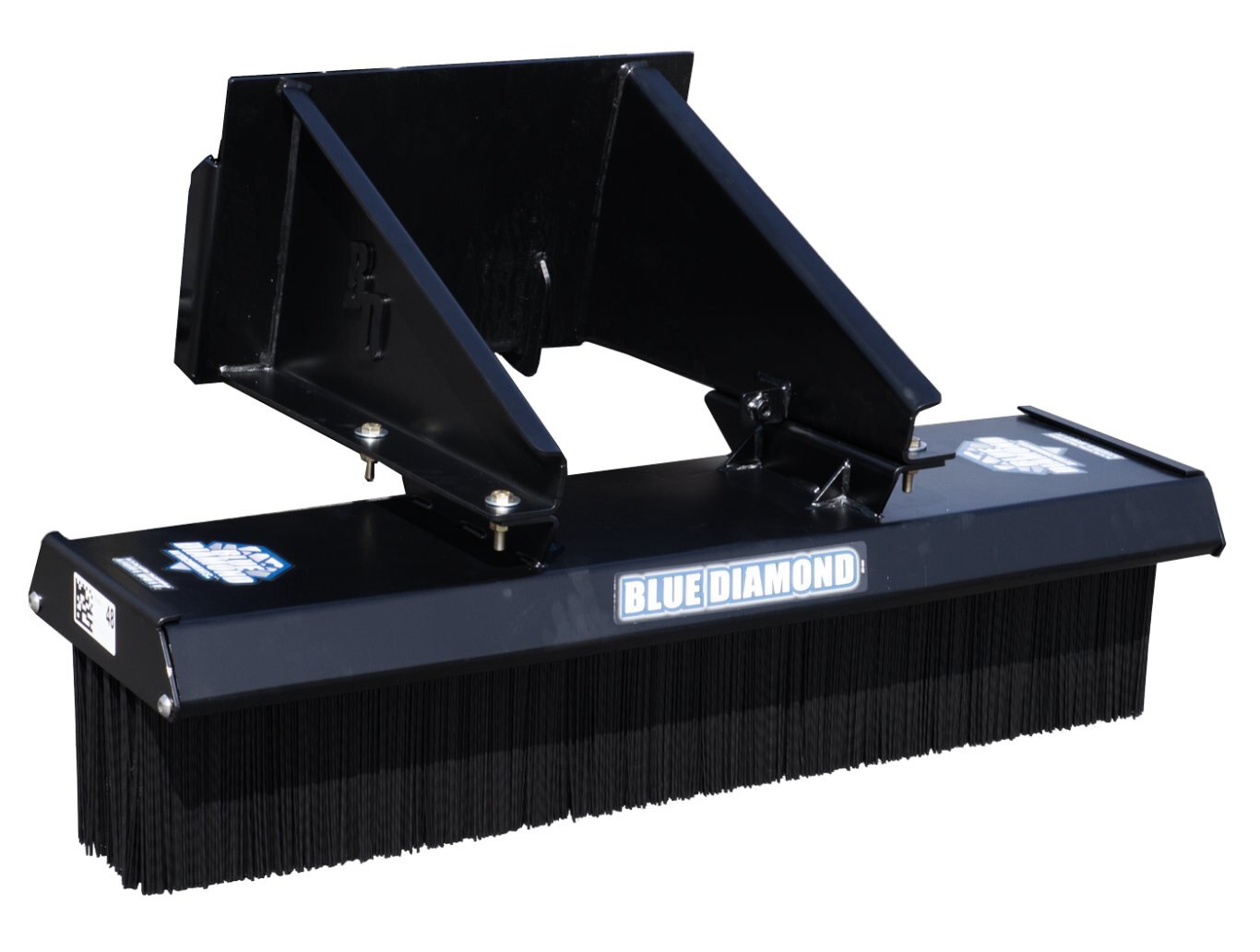 Bolt on mount for use with multiple machines Mounts available to fit mini skid steers, mini excavators, and forklifts 5 rows of bristles 36”, 48”, and 60” widths