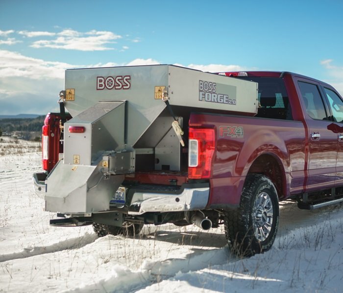 The BOSS Forge 2.0, a stainless steel hopper spreader from BOSS performs just as powerfully and reliably as the VBX Spreader line while offering a fully stainless steel hopper. The Forge is constructed using a combination of bolting, riveting and welding for optimal durability and serviceability throughout the spreader's lifetime. The stainless steel BOSS Forge is available with either a pintle chain or auger feed system. Both the hopper and the drive train housing are constructed with one of the heaviest-gauge materials on the market, enhancing the Forge's sturdiness and durability in adverse winter conditions. It's another example of a tough, reliable innovation from BOSS that is built to BACK YOU UP.