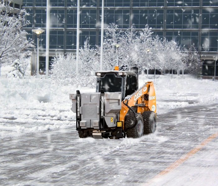 Easy skid-steer hookup for quickly switching from box plow to QuickCube™ making it the ultimate snow and ice control machine.