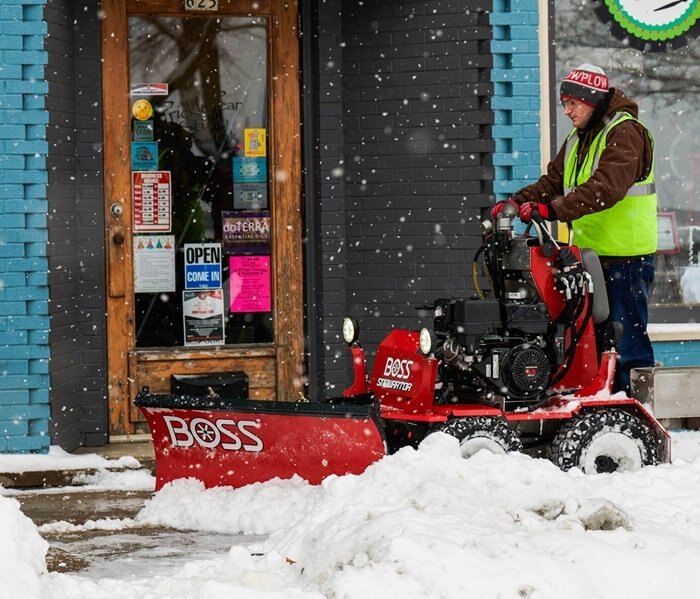Any snow and ice contractor will tell you, managing sidewalks has its own set of challenges. The BOSS Snowrator is a patented, right-size solution designed to make quick work of snow-and ice-covered sidewalks and brings a maneuverable, multi-tasking, labor-saving solution to your fleet. Snowrator reduces the need for shovelers, maximizing productivity and efficiency- whether in metro, commercial or residential environments- where clean and clear walking surfaces are always the top priority. Snowrator is a labor saver. The Snowrator quickly deploys to plow and de-ice surface areas- effectively reducing the need for shovelers. Snowrator is a time saver by allowing the operator to brine, spread, and plow at the same time to maximize on-the-job productivity and profitability. Snowrators never call in sick and are always ready to get the job done.