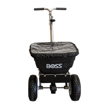 Conquer sidewalks with a BOSS Walk-Behind Spreader. Simply and efficiently spread up to 80 lbs. of material with the professional-grade BOSS Walk-Behind Spreaders. Side and front adjustable baffles, weather cover and grate are included. It's another way the innovations at BOSS are built to BACK YOU UP.
