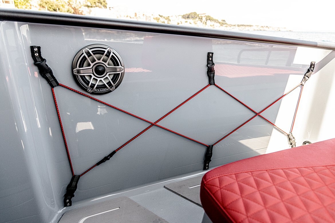 With Mood-setting features such as the optional Premium JL audio system, you get an excellent, high performing marine loudspeaker setup and onboard entertainment that supplies the perfect soundtrack for an exhilarating day out, incl. a digital amplifier, JL Audio M6 speakers and a subwoofer. Wireless phone chargers ensure seamless connectivity. Everything on the BRABUS Shadow 300 is fitted to serve one purpose: to make any owner’s experience onboard stress-free and more enjoyable. |