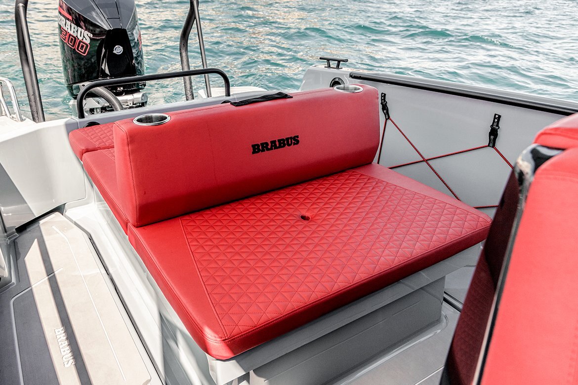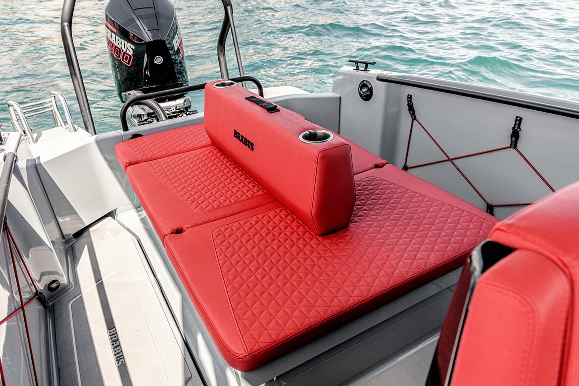 You can choose between the sporty and playful Edition One design, which combines BRABUS Platinum Grey hull color with the Edition One hull graphics and striking BRABUS Red upholstery, and the latest design variant in Quantum White. The Quantum White’s white hue and elegant pinstripe graphics in combination with the BRABUS Platinum upholstery color brings classiness as well as a luxurious, one-of-a-kind character into this design option. |