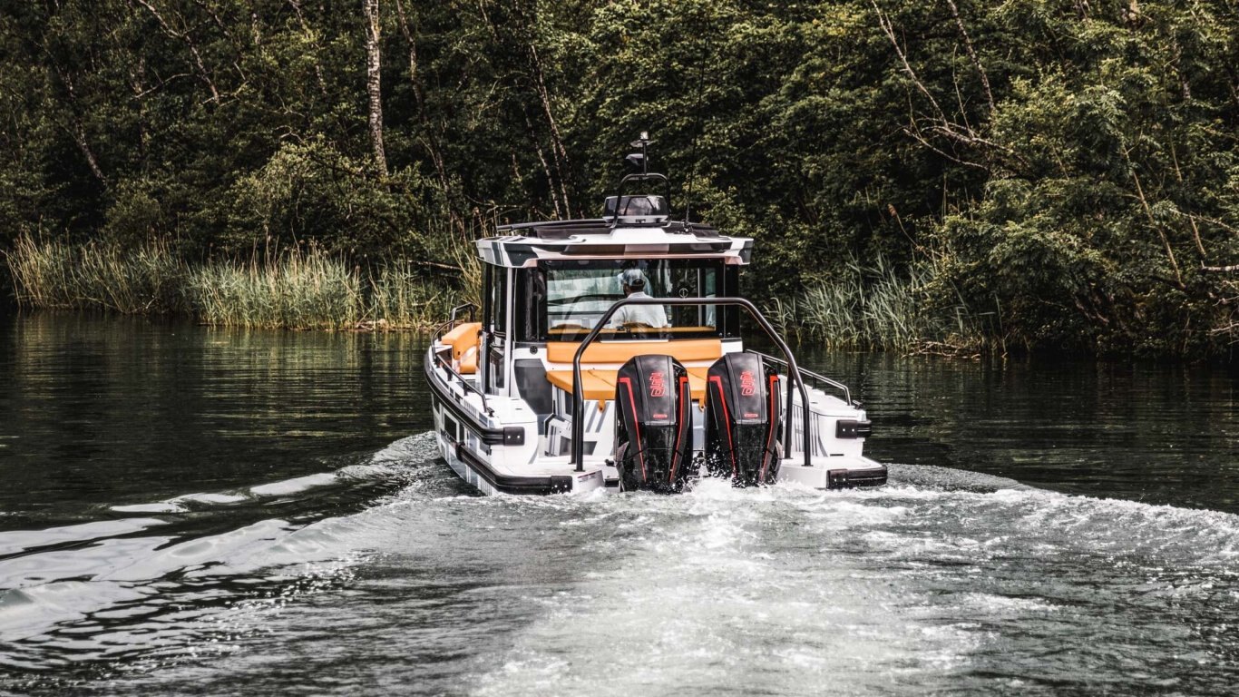 A true all-weather performer - Why let the weather dictate how you spend your day? Warm and cosy inside, the ‘fully-enclosed’ Cabin is perfect for customers in colder weather climates and will give the possibility to extend the boating season by many months. The boat is equally suited for hot weather climates, where customers can open-up the roof and have those large, side-opening doors thrown wide open, when they want to embrace the sun and warm weather but still have the possibility to ride protected and dry if bad weather surprises or during chilly evenings.