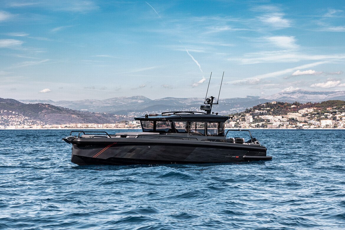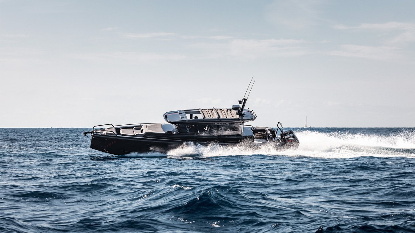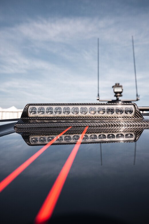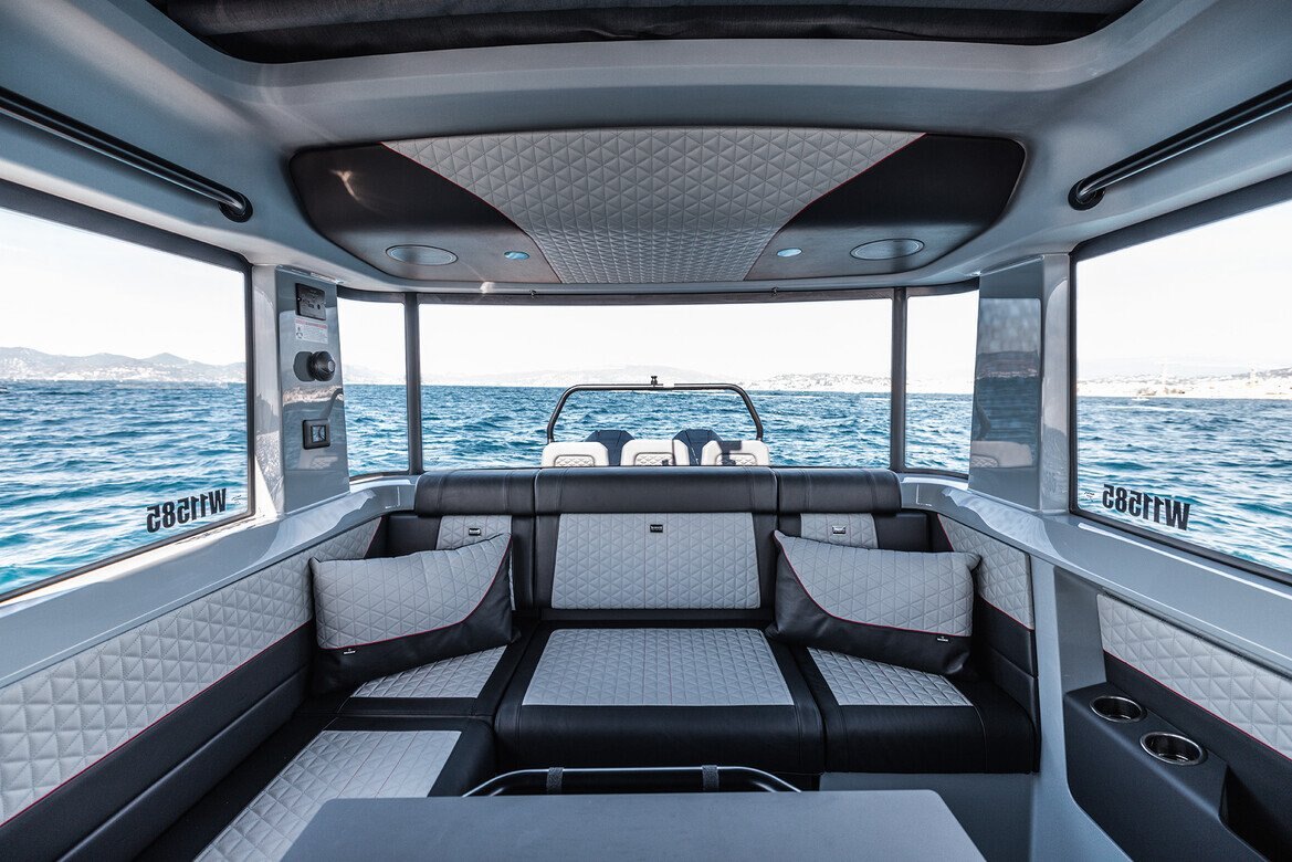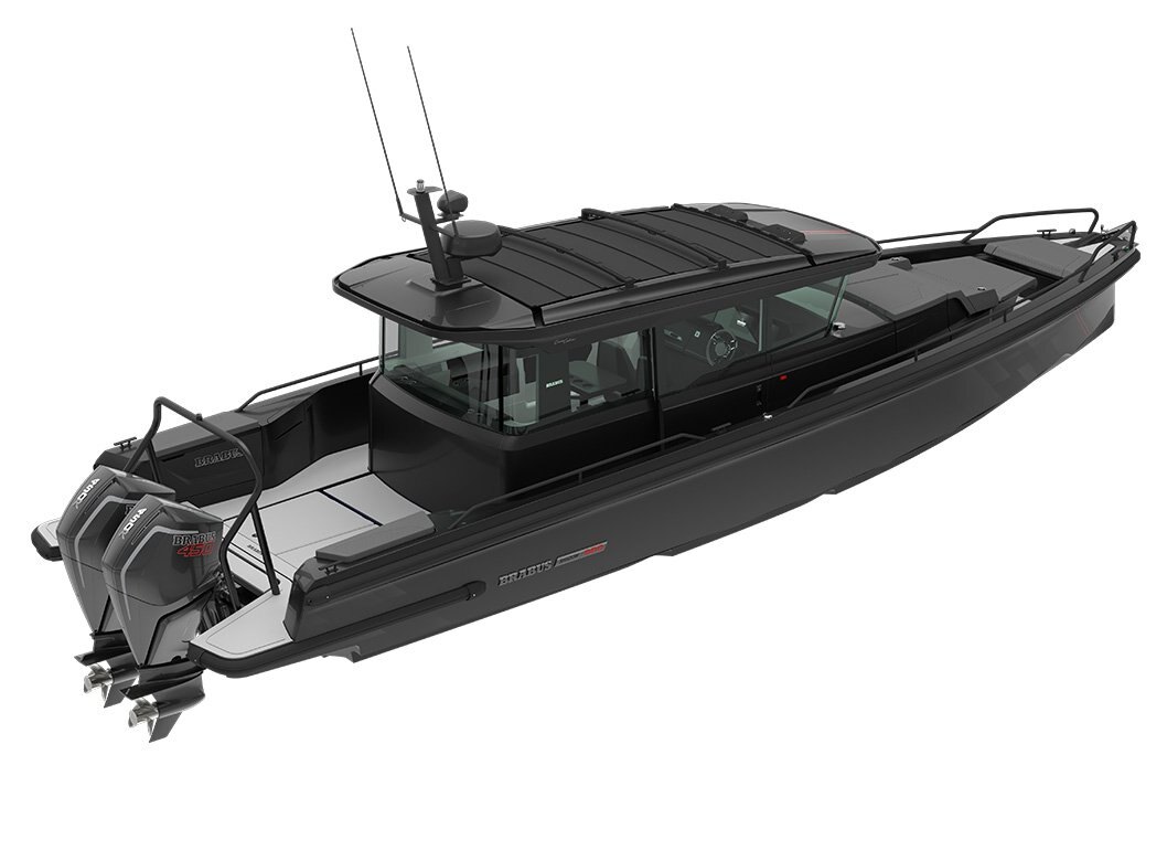 Electronics - The BRABUS Shadow 900 features a Simrad®️ dual touch -screen full width, ‘Glass Helm Information Display' with an updated BRABUS User-Interface, including G-shock monitoring, access to the boat’s main navigation, engine management, on board entertainment and driving-assist features. With the extended Navigation Package the helm is expanded into a four screen “bridge” setup that includes additional functions like displaying the speed for the passengers, audio controls and also a digital Panerai watch.