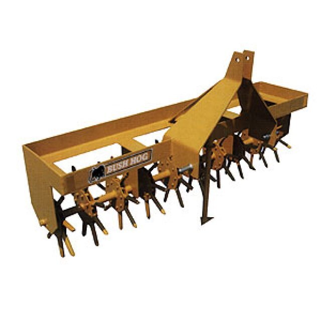 Perfect for greenskeepers, professional landscapers and athletic field maintenance, Bush Hog pluggers aereate, dethatch and improve water intake. The ¾-inch spoons provide excellent soil penetration, allowing nutrients and air to reach the turf’s root system to promote healthy growth. A 1 ¼-inch diameter shaft with greasable sleeves supports independent hubs. The steel frame is designed as a weight box so weight may be added to increase down pressure for heavily compacted soil. Slicing knives are also available on all models.