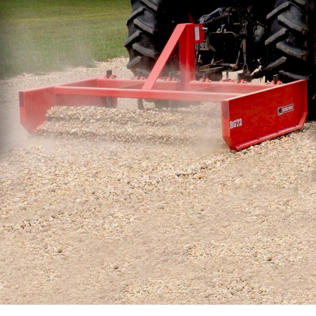 Bush Hog® Road Grader Blades fit a wide range of tractors. The Heavy-Duty, CAT I three-point hitch, 4 in. x 4 in. mainframe and double-lug lower hitch points help ensure performance and reliability. Shearing action of the material being worked is provided by two, reversible, high carbon steel cutting edges. One edge mounted inside the box and the other mounted on the back side allow the blade to be operated in forward or reverse. Maximum penetration in hard-packed material is accomplished by the scarifier kit which has a maximum working depth of 3 in.