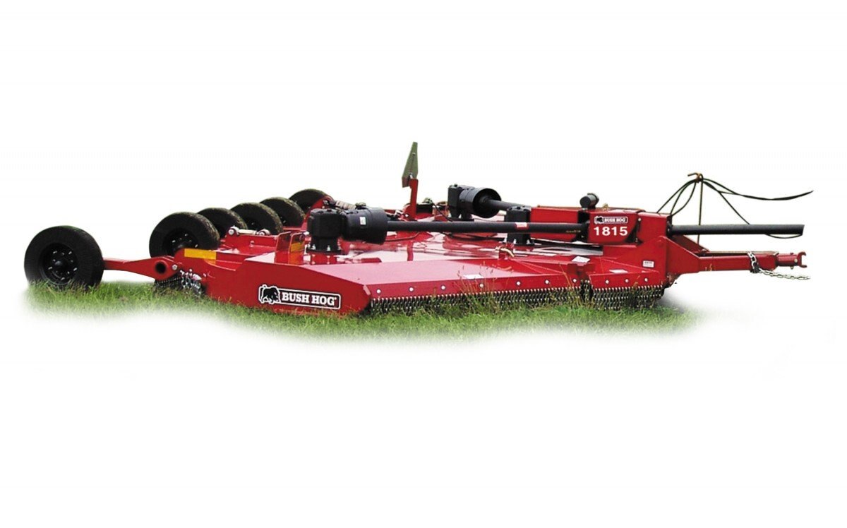 The Bush Hog 1815 Flex-Wing Rotary Cutter is designed to cut weeds, grasses, and brush up to 2 1/2-inches diameter, and this unit is a great choice for tractors in the 60 to 130 HPclass. The 1815 is recommended for pasture maintenance, corn shredding, drainage areas and general maintenance locations such as air strips. The 1815 has maintenance friendly features, smooth decks for E-Z cleaning, high performance cutting and distribution, and like all Bush Hog® rotary cutters, it is built Bush Hog® tough for years of dependable service.