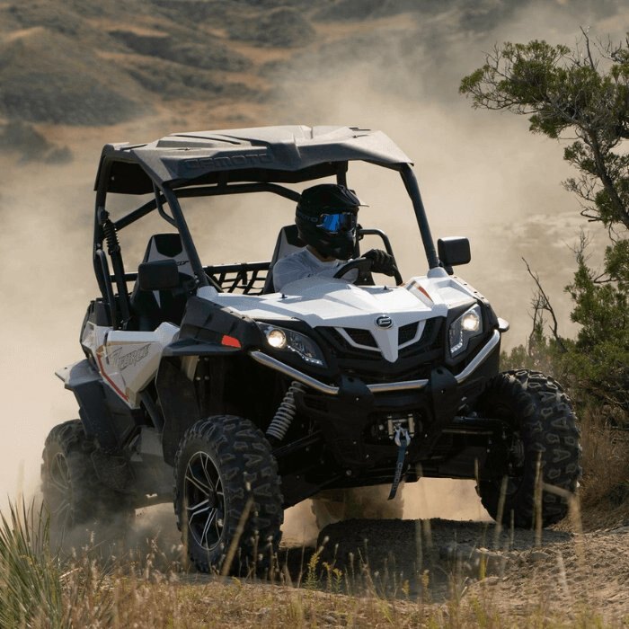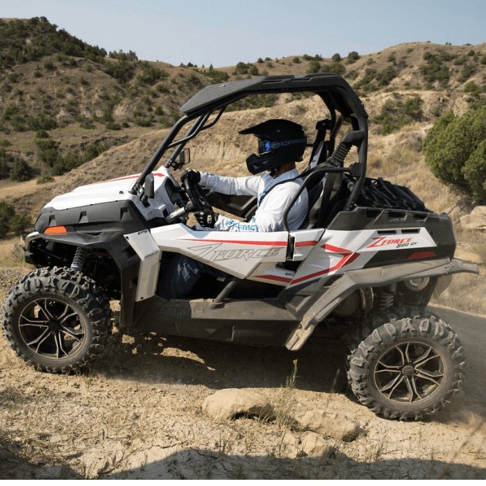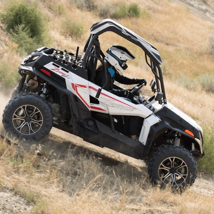 Available in blue, orange or white, the ZFORCE 800 EX is a versatile, reliable side-by-side that ensures you great rides on the trails. Roof, half doors, 3000 lbs winch, electronic power steering (EPS) and side mirrors included with purchase.