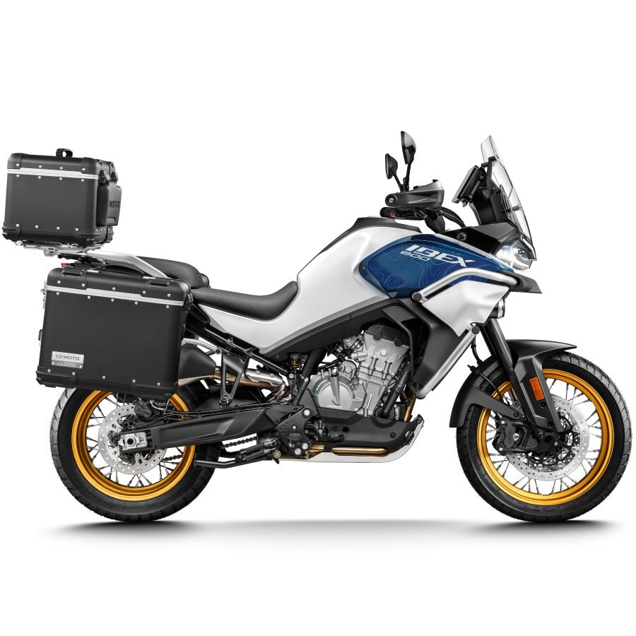 799cc 8" MMI screen Maximum power 94 hp / 9,000 rpm Heated seat Seat height 825 mm Bosch EFI Driving mode RAIN, SPORT, OFF-ROAD and ALL-TERRAIN Speed regulator KYB inverted telescopic front fork J.JUAN brakes Standard and cornering ABS Black rigid boxes Connectivity to the CFMOTO RIDE App LED headlights, taillights and turn signals EASY protection plan available