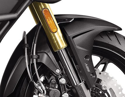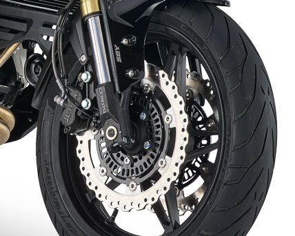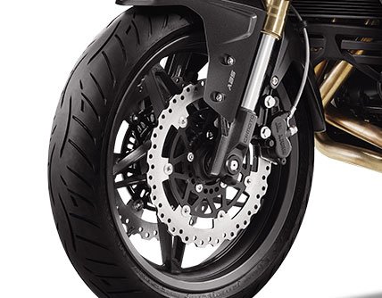 Up front, two-piston calipers clamp down on dual semi-floating discs. Continental ABS has your back should you ever need it. Pirelli Angle GT tires complete this performance package. |