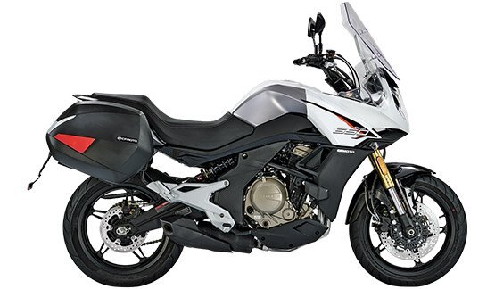 LED headlights, taillights, and signal lights; 5" TFT display with Bluetooth and CFMOTO Ride App connectivity Hard side panniers, adjustable windscreen