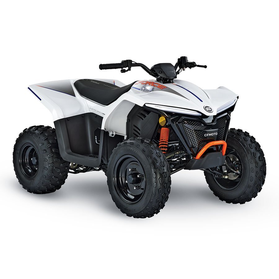 Designed to ignite the spirit of exploration in riders aged 10 and above, the CFORCE EV110 combines futuristic styling with advanced features that redefine the electric ATV experience. Its sleek design is complemented by LED lighting, a closed grille, and remarkably quiet performance. With safety a priority, it features a digital geofence for setting boundaries and alerts, the CFMOTO Smart Safeguard app for vehicle monitoring, and an SOS button for instant assistance.