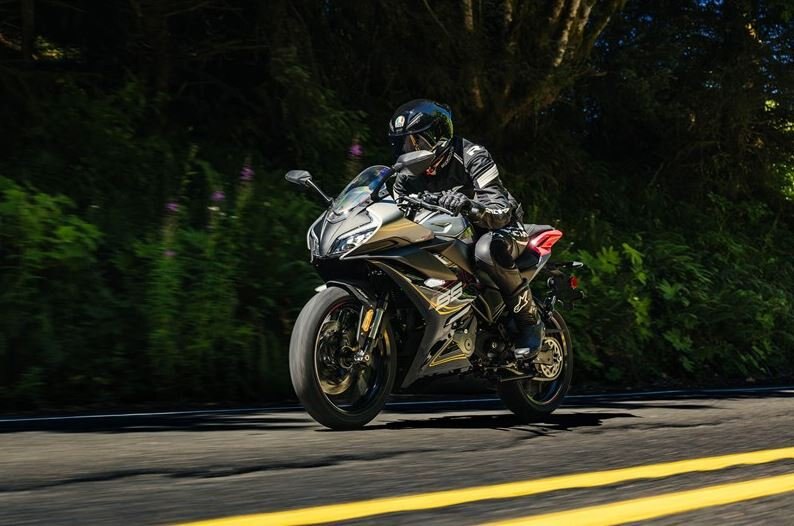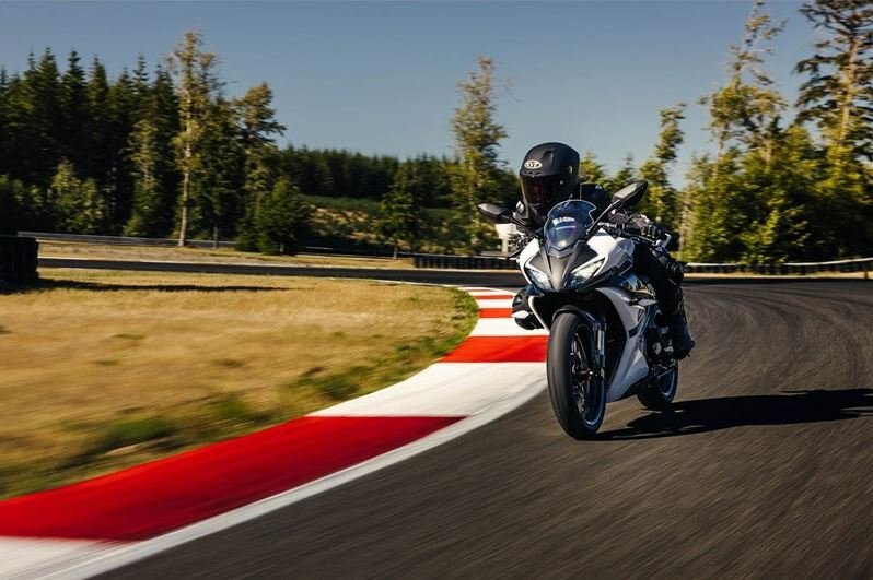 The single-cylinder, liquid-cooled, 292cc DOHC engine produces 29.2 hp at 8750rpm and 18.7 lb-ft torque at 7250rpm. Quick-revving power ensures an exhilarating ride both on the track and street. |