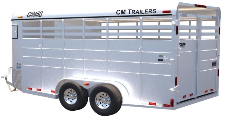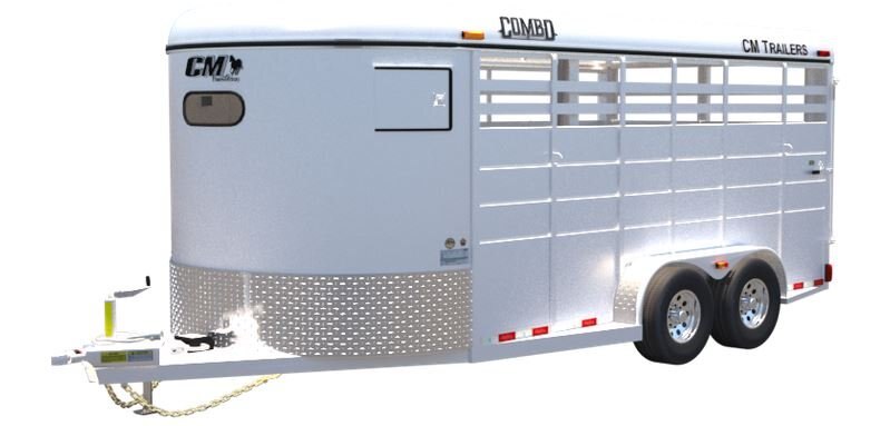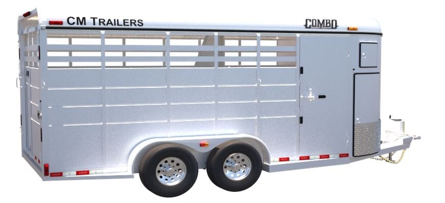 With a steel frame and galvanneal steel exterior, CM’s Combo is perfect for all of your horse or cattle needs. Available in 16’ length, 6’ wide, and a height of 6’6”, the Combo features a 2-5/15” forged coupler, 2-5200LB Rubber Torsion Axles, four-wheel independent suspension & greasable hubs, forward self-adjusting electric brakes on all wheels, and an emergency breakaway system.