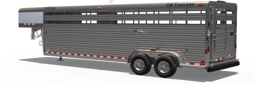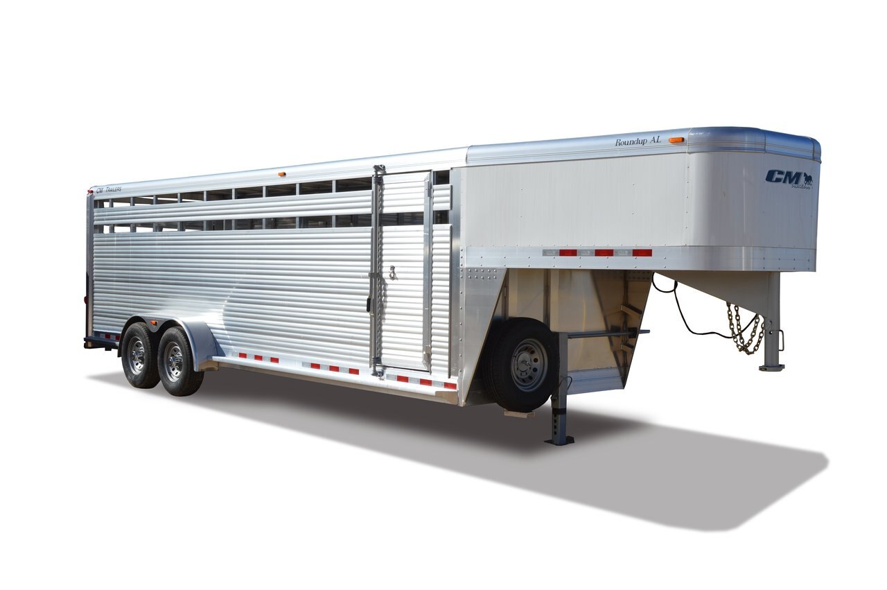 Featuring all-aluminum construction, CM’s Roundup AL is as powerful as it is stylish. Ranging from 16 to 28 ft. in length, the Roundup AL can easily accommodate your animals. 6’8” wide and 6’6” to 7’ tall, this model comes standard with rubber torsion Dexter Axles, a 2-5/16” adjustable gooseneck coupler, silver mod wheels, a spare tire & wheel, sealed L.E.D. lighting, and forward, self-adjusting brakes on all wheels.
