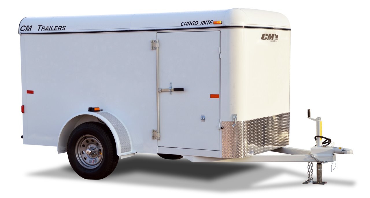 When it comes to economic hauling, CM’s Cargo Mite is the way to go. This steel frame and galvanneal steel exterior trailer comes in lengths of 8, 10, and 12 feet. 5 to 6 ft. wide and 5 to 5 ft. 6 in. tall, the Cargo Mite features a 2” forged coupler, rubber torsion Dexter Axles, silver mod wheels, a flat front with optional V-Nose, and sealed L.E.D. lighting.