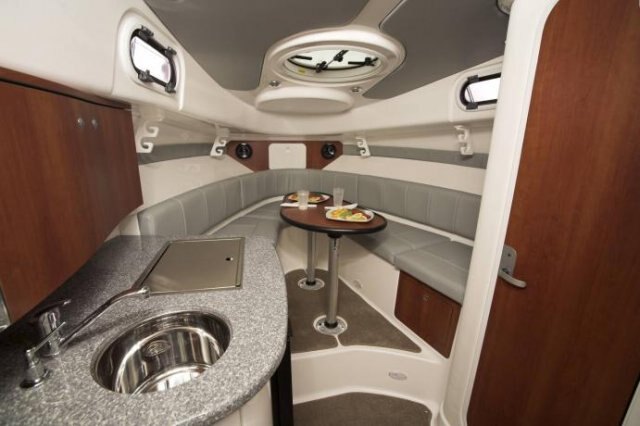 • Galley w/stainless steel sink, 12 volt refrigerator & butane stove
