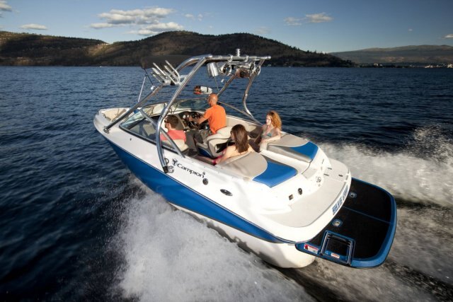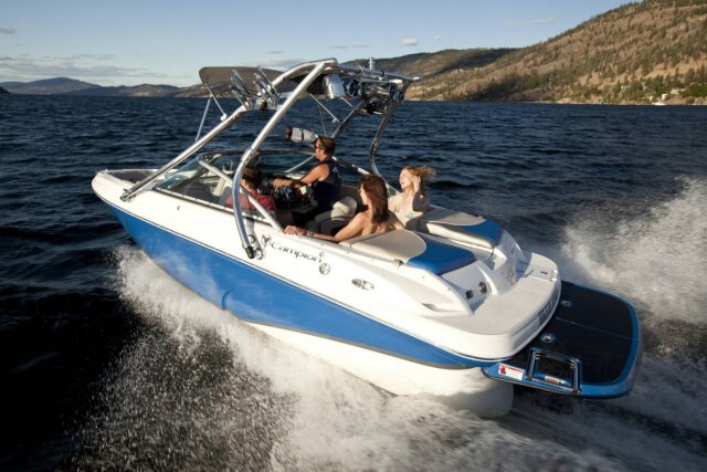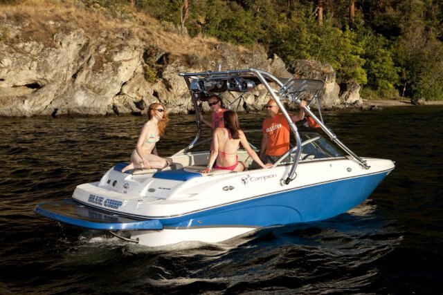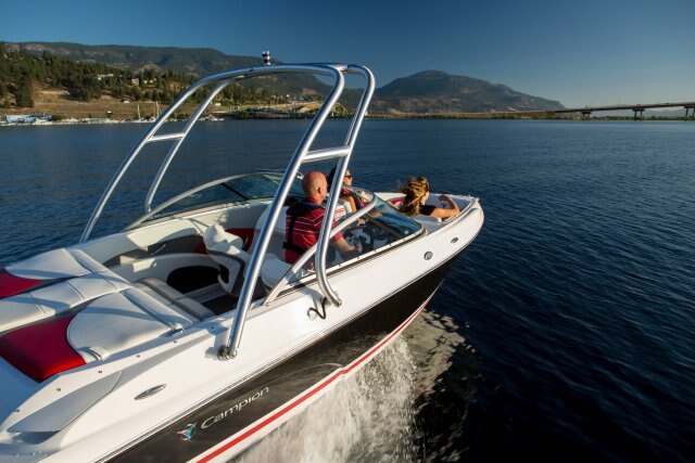 - Black Sunbrella acrylic bimini sun top (n/a w/wake tower)