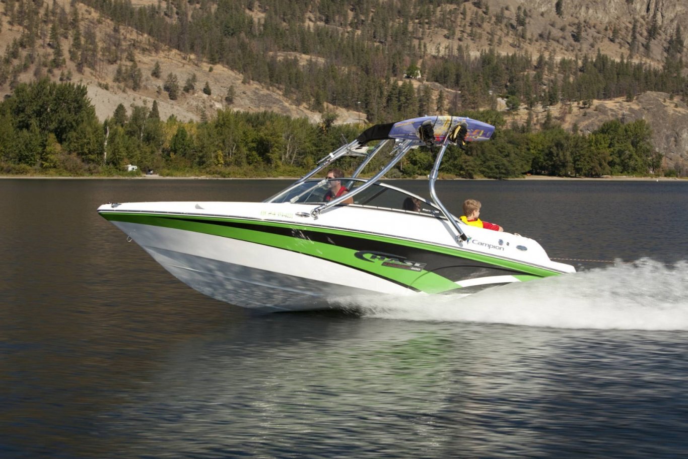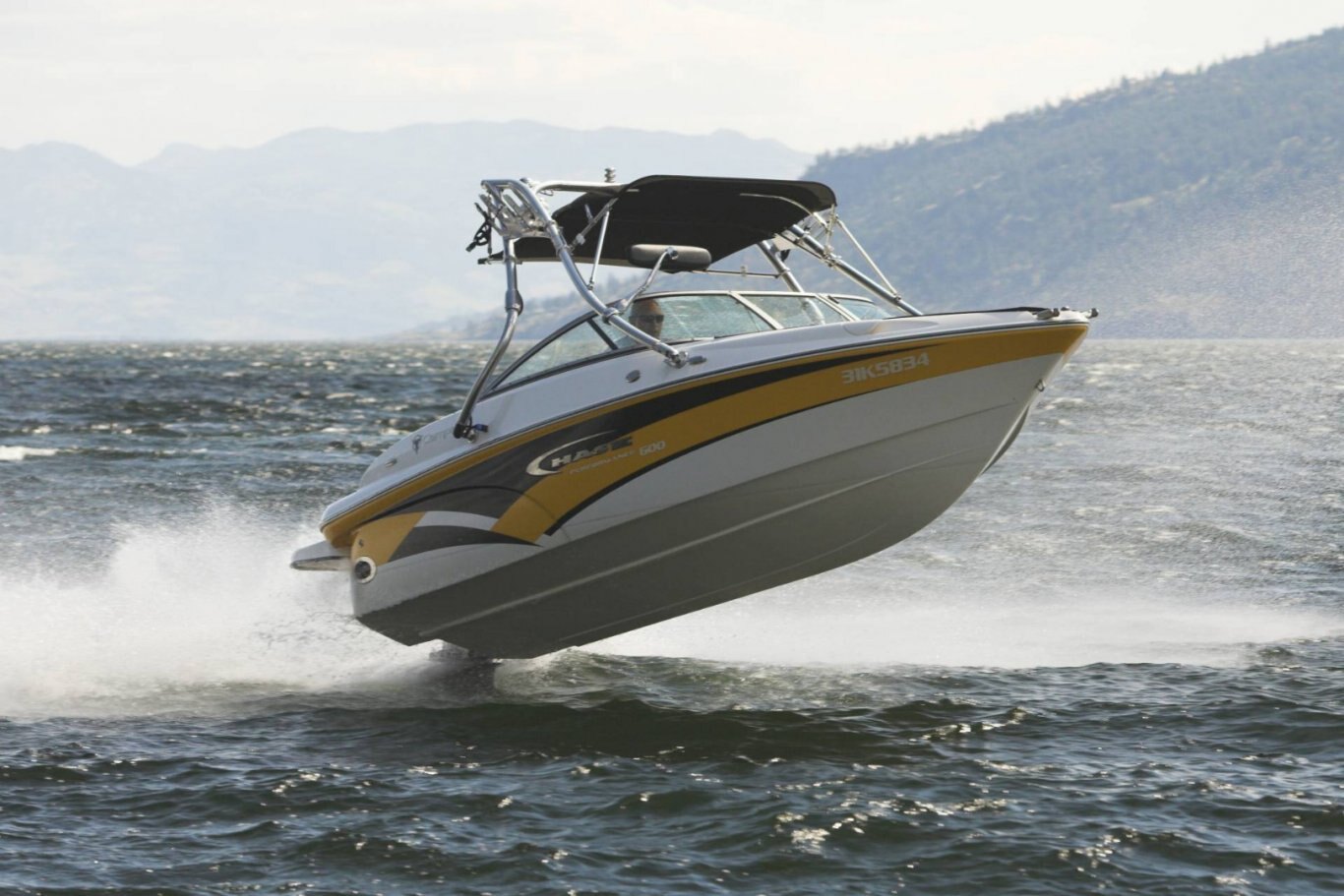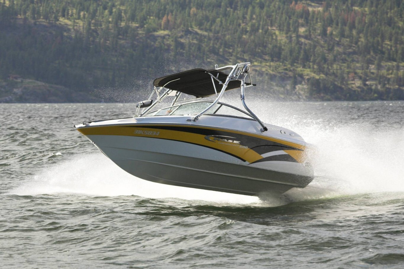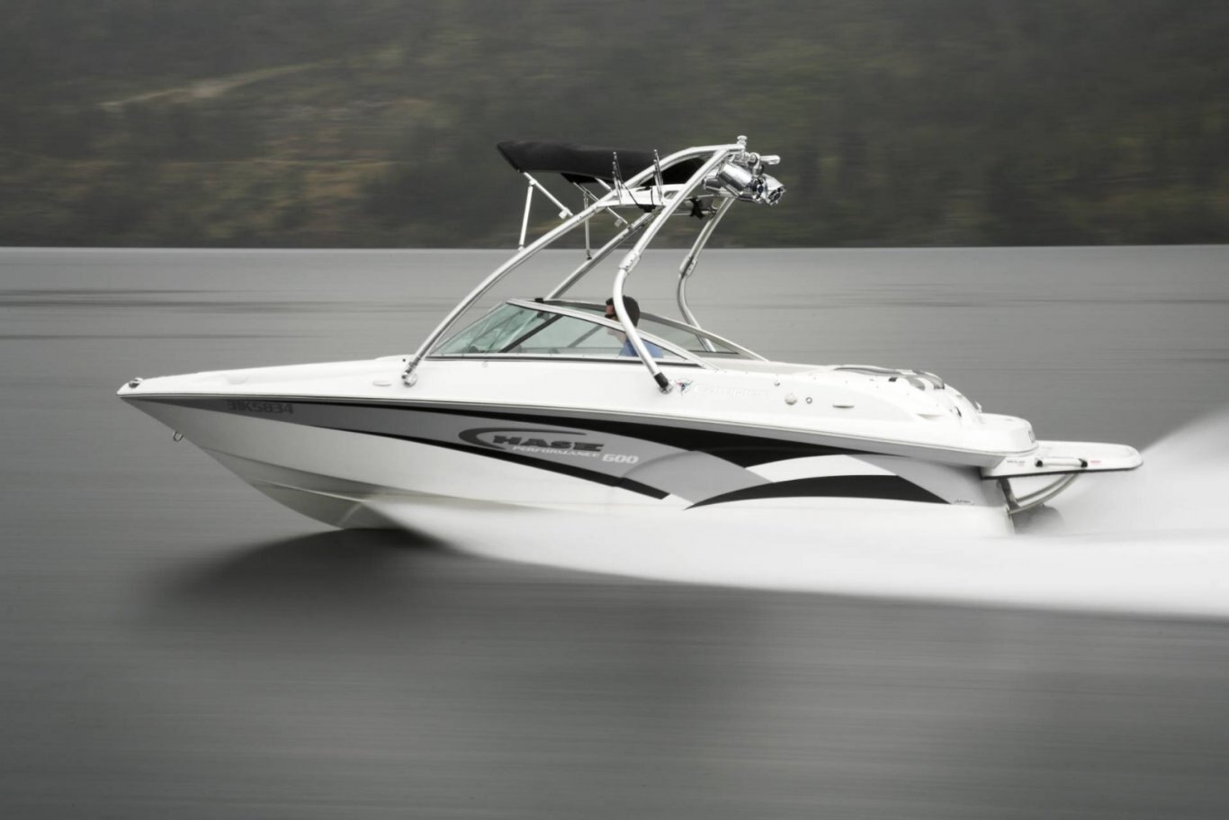 • Black Sunbrella acrylic bimini sun top (n/a w/ wakeboard tower)