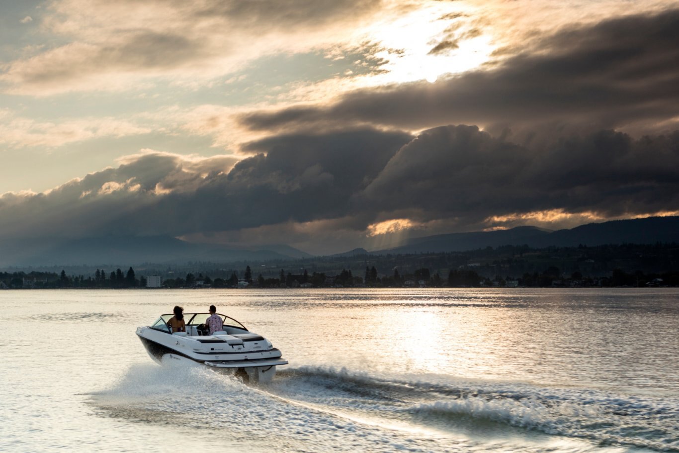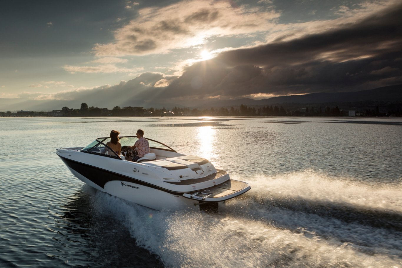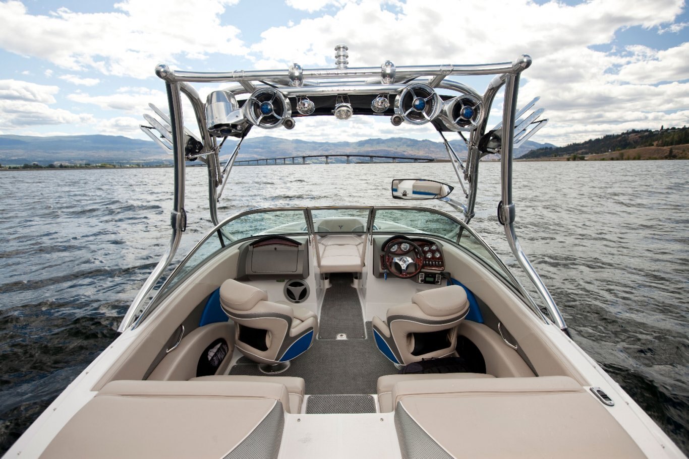 - Black Sunbrella acrylic bimini sun top (n/a w/wake tower)