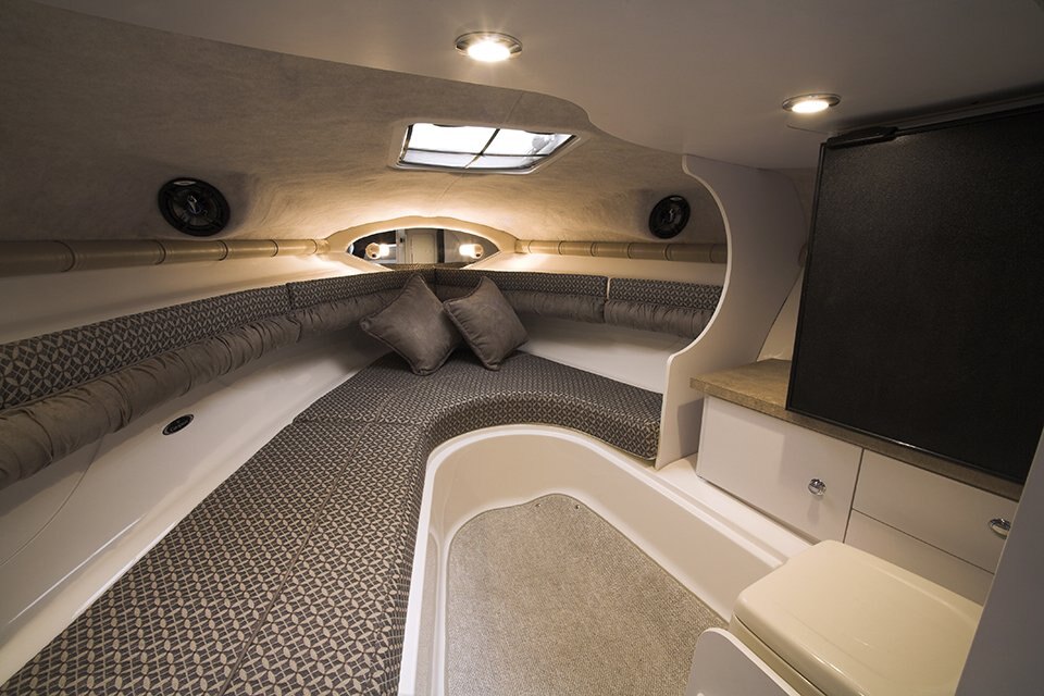 - Cuddy cabin with storage and lighting