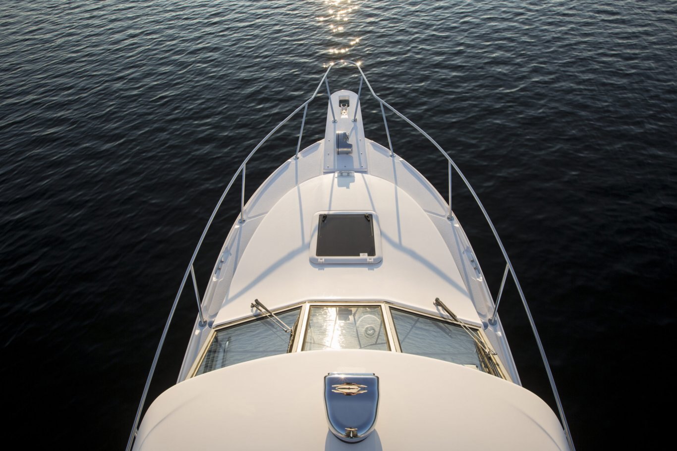 Heavy-duty rub rail w/stainless steel inserts Stainless steel deck hardware Stainless steel walk thru bow rails Opening deck hatches w/screens Opening mid-cabin hatches w/screens Opening port holes w/screens Stern stainless steel pull out cleats Stainless steel fuel fill & cap Stainless steel flush mounted deck fills & vents Aluminum framed tempered full-width glass windshield Stainless steel steering wheel Welded stainless steel bow rails
