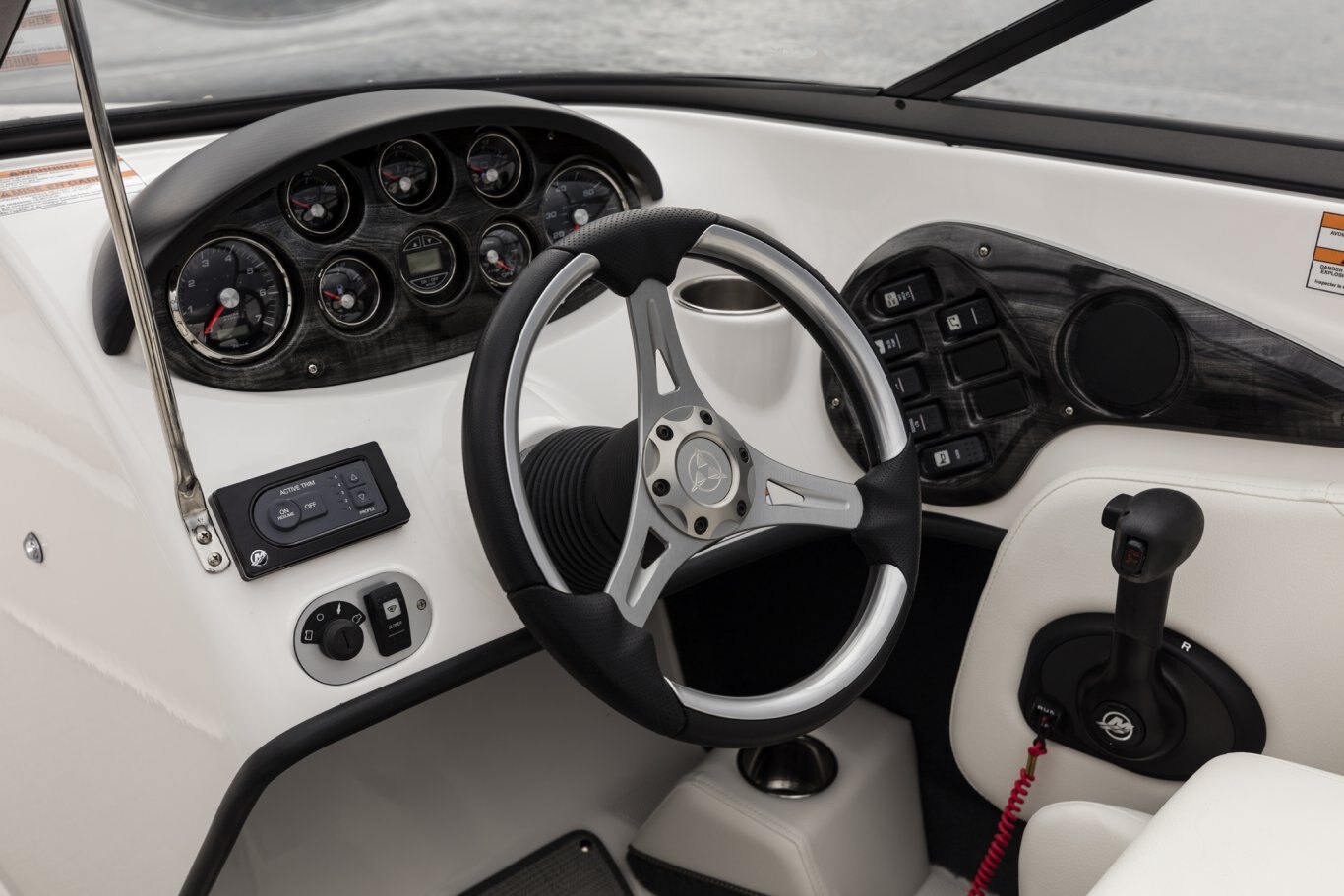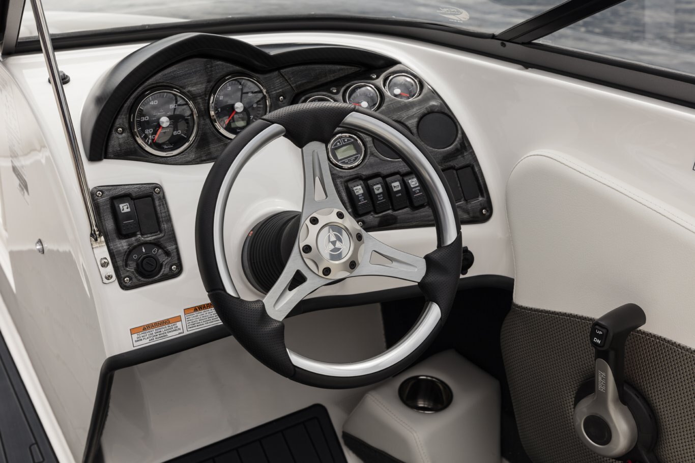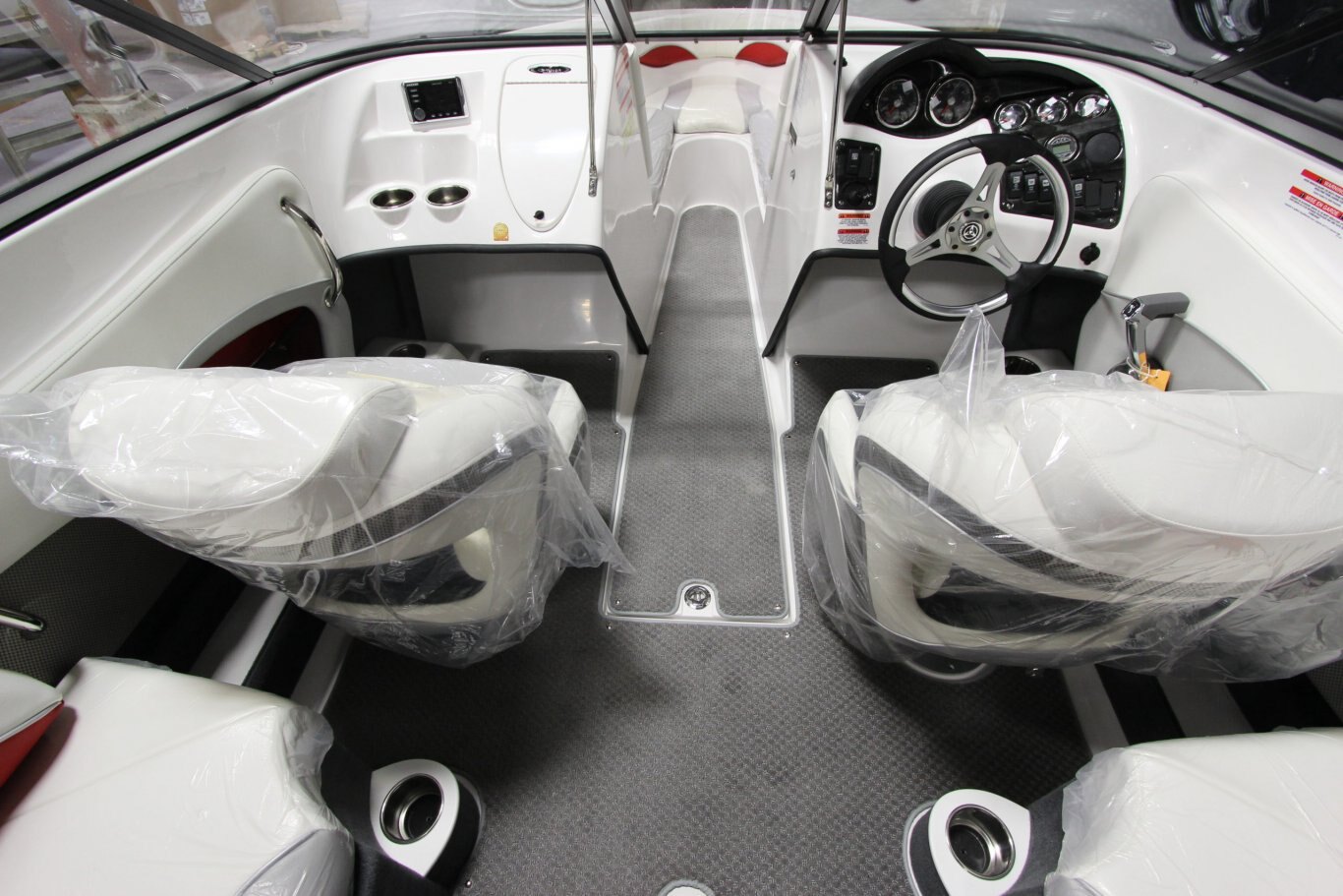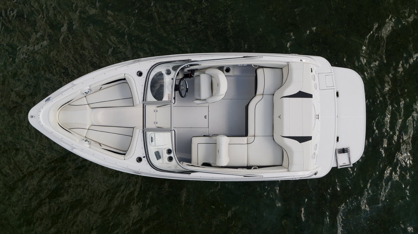 LED courtesy lighting Convertible table w/fill in cushions Premium snap in marine flooring Portable cooler Gunnel side storage Stainless steel cup holders Razor ultra suspension bucket seat with starboard & port flip bolsters with fore & aft slider base Walk-thru transom Aft lounge w/flip backrest Glove compartment / ice box Portable storage bins Gunnel side storage Padded engine cover/sun pad w/bench seat & storage under Bow seating with storage under Wrap around aft seating w/storage under Ski locker
