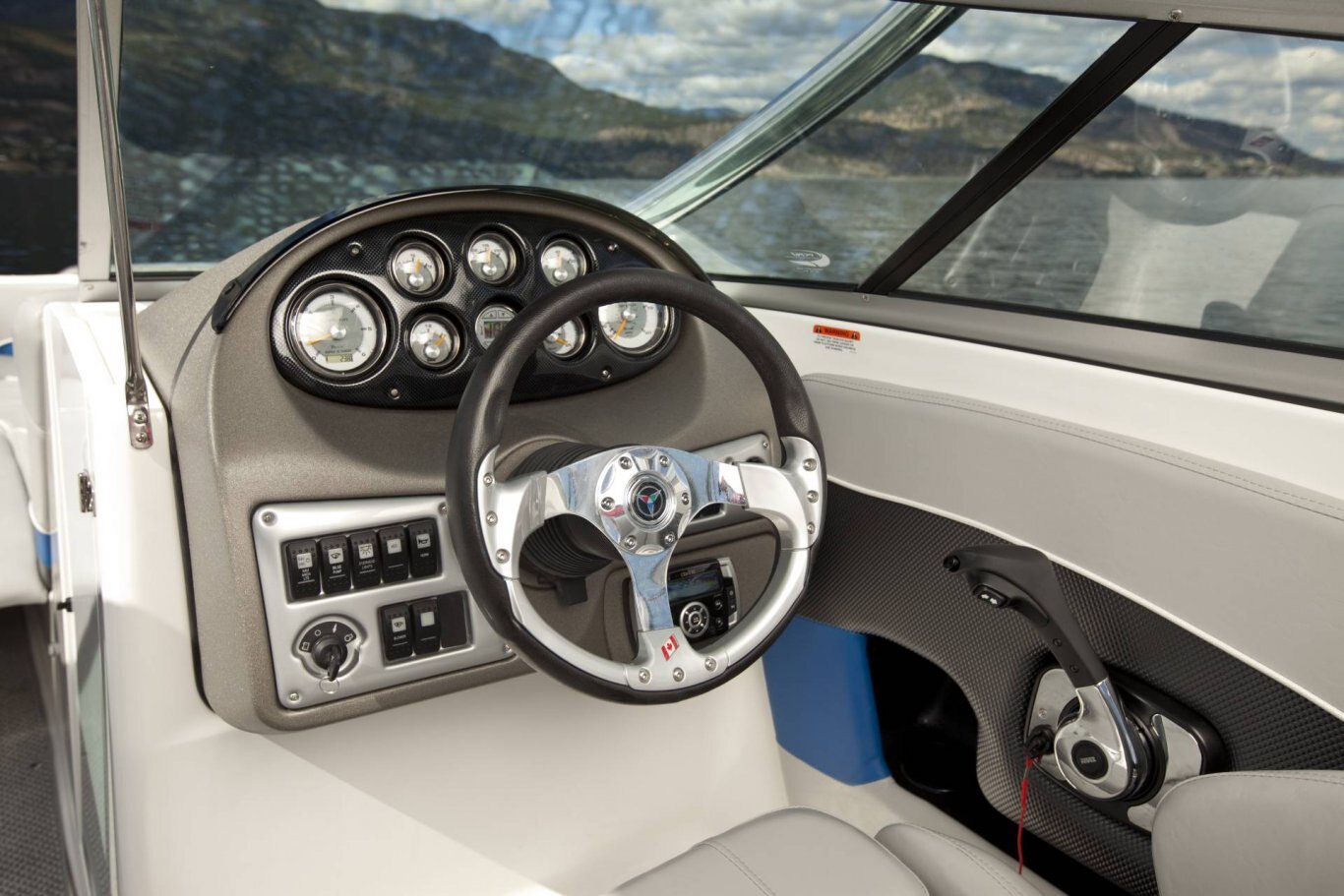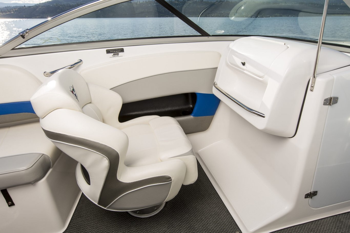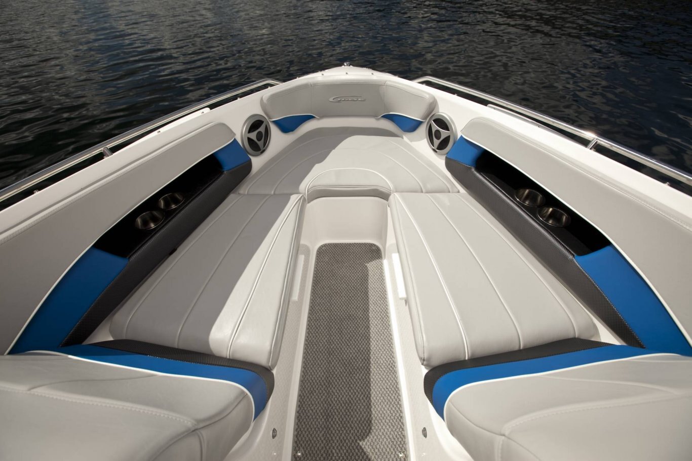 LED courtesy lighting Convertible table w/fill in cushions Premium snap in marine flooring Portable cooler Gunnel side storage Stainless steel cup holders Razor ultra suspension bucket seat with starboard & port flip bolsters with fore & aft slider base Walk-thru transom Aft lounge w/flip backrest Glove compartment / ice box Portable storage bins Gunnel side storage Padded engine cover/sun pad w/bench seat & storage under Bow seating with storage under Wrap around aft seating w/storage under Ski locker