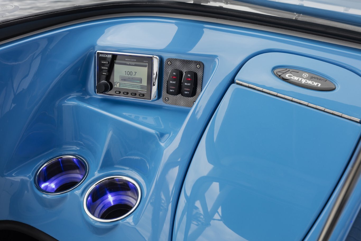 LED Courtesy lighting Glove compartment LED courtesy lighting (WS20, WS23) Portable cooler Ski locker Gunnel side storage Razor ultra suspension driver bucket seat with flip bolster with fore & aft slide base (C18) Razor ultra suspension bucket seats with starboard & port flip bolsters with fore & aft slider base (C20, C23) Stainless steel cup holders Aft bench seat w/storage under Bow seating w/storage under Padded engine cover/sun pad w/bench Campion Marine Deck on the extended platform, integrated platform & walk-thru Premium leather-wrapped steering wheel Color-coordinated dash (not available in Impulse Mini Flake) In-dash depth sounder LED cupholder & cockpit lighting package Transom center walk-through Convertible table with fill-in cushion (C23) Console storage with access doors (C23)