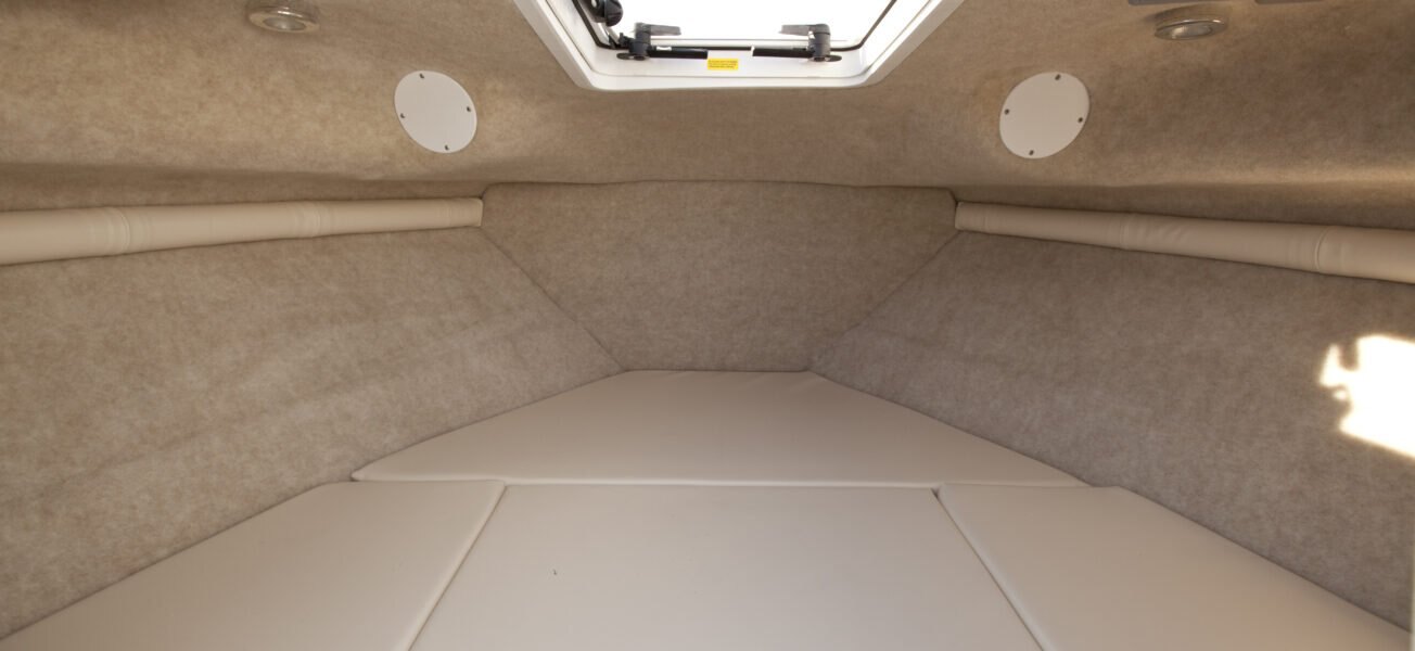 Apex hull Three-dimensional woven fiberglass Composite stringer grid Composite transom Kevlar laminate reinforcement Uni-bond deck joint Enviro responsible resin Foredeck walkaround Fiberglass hull liner Fiberglass cockpit w/overboard drainage Starboard swim platform Bow rope locker Integrated LED docking lights Bow rope locker Cuddy cabin w/storage & lighting Lockable & removable bi-fold door
