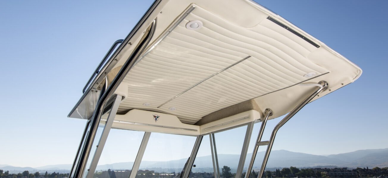 Hardtop w/sliding side windows Opening porthole w/screen Built-in tackle box Stainless steel deck hardware