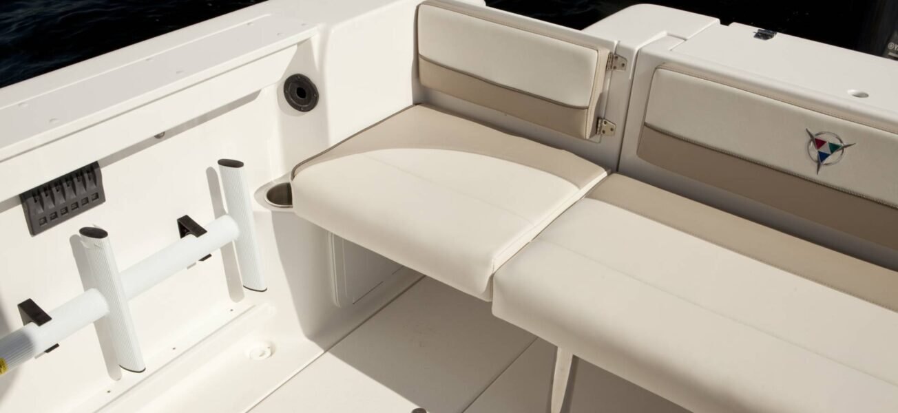 Stainless steel cupholders LED courtesy lighting Gunnel rod storage & side storage Bait tank Downrigger mounting surface Deck rod holders Removable aft bench seat Glove compartment Built-in tackle box Floor storage Hardtop w/sliding side windows Fold-down jump seats Black Sunbrella® drop curtain Swivel bucket seats w/fore & aft slider base