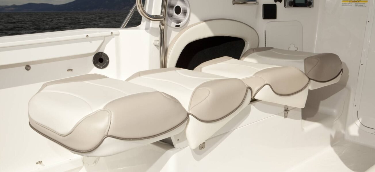 Color-coordinated gelcoat feature In-dash depth sounder Aerated live bait tank 18 qt. (16.5 L) Anchoring package-anchor, rode Anchor windlass package Livewell 100 qt. (95 L) Radar arch w/rod holders Portside sleeper seat exchange Electric head w/macerator exchange Black Sunbrella® camper back Black Sunbrella® sloper back V-berth extended filler cushion package Stainless steel rod holder rack for hardtop Shore power (50’ cable, panel, GFI outlet, 20 amp charger) CE Package (IMCI Certificate & Declaration of Conformity plus related hardware)