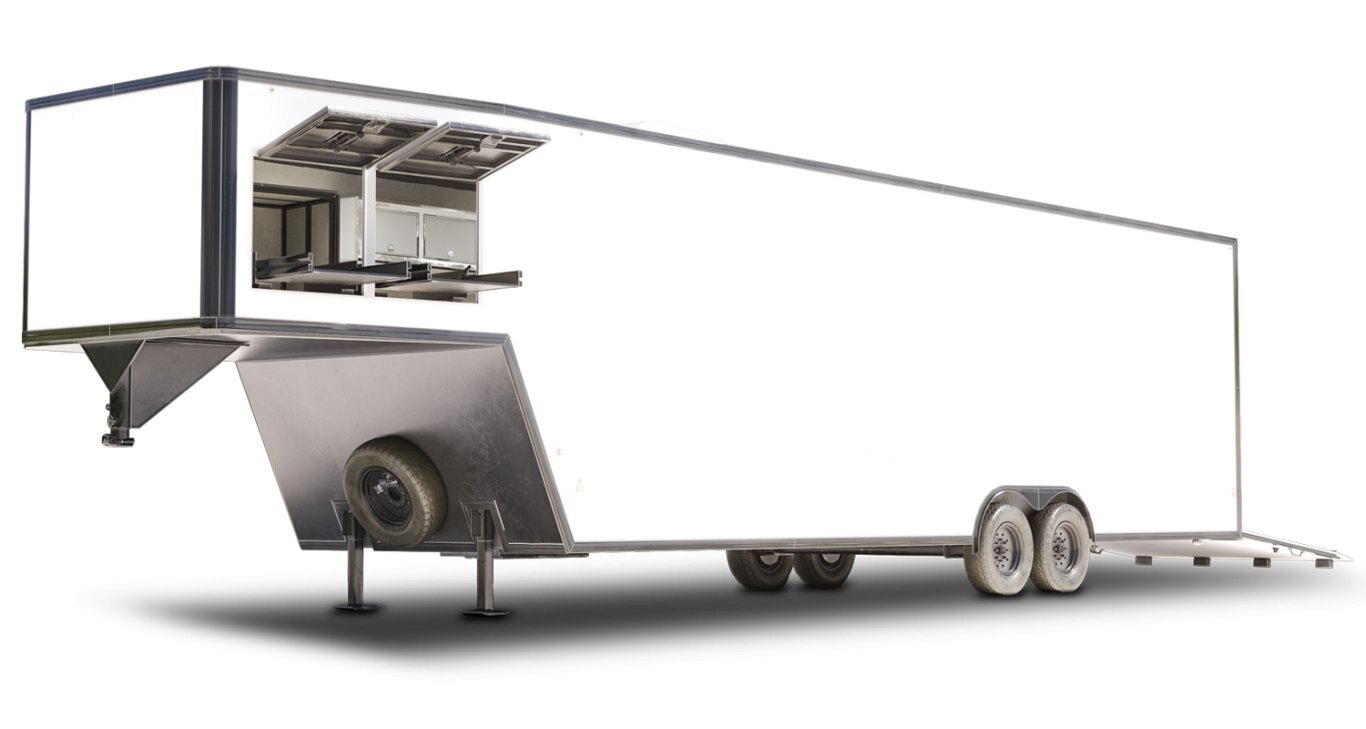 | CargoPro's enclosed gooseneck car hauler trailers combine smooth operation with maneuverable aluminum design. |