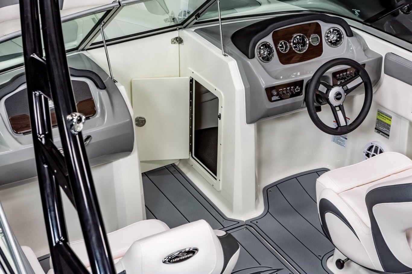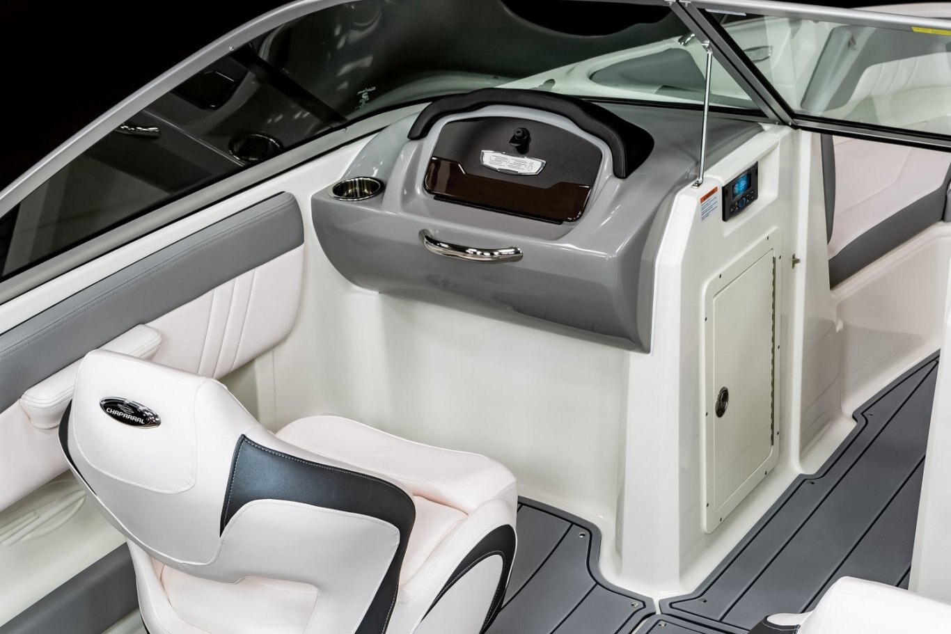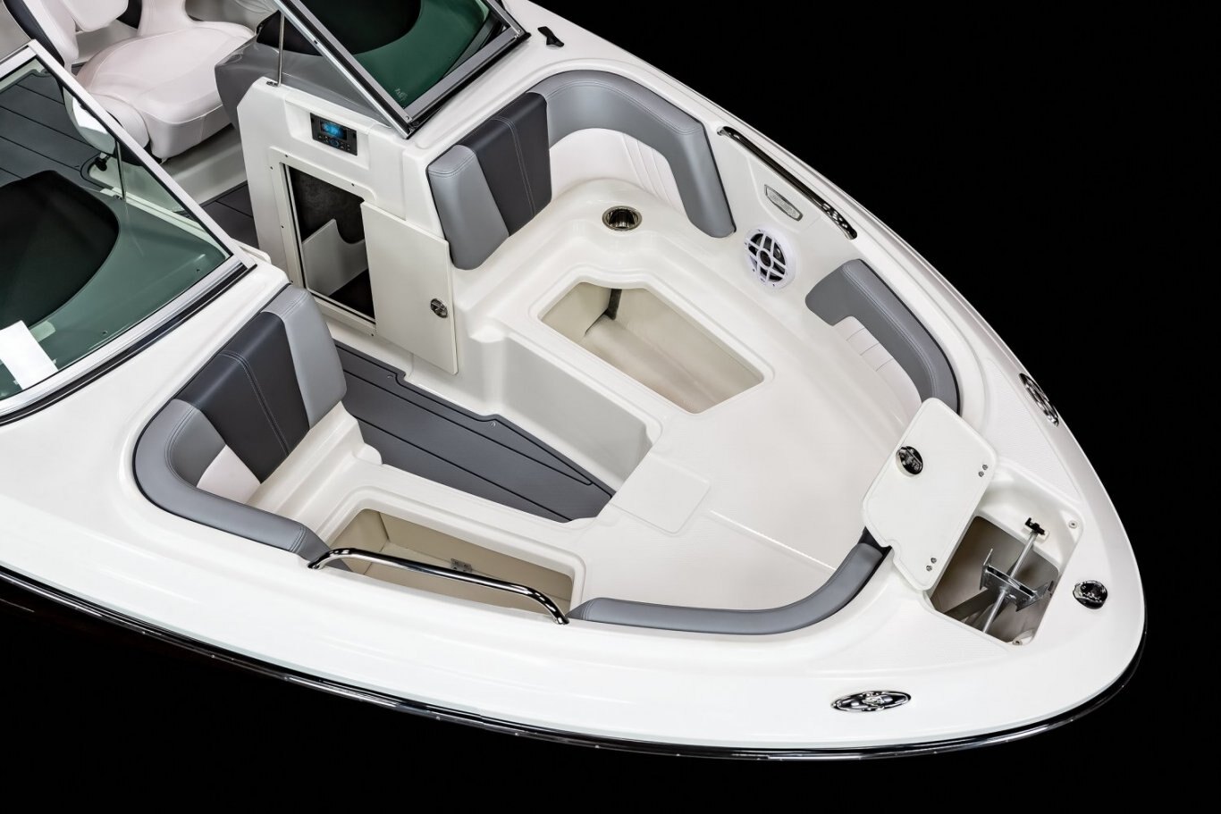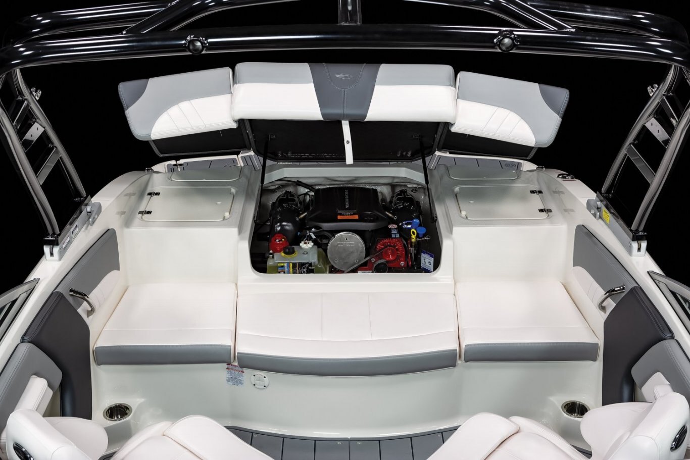 - Cockpit Layout: Two Bucket Seats (Slide and Swivel) with Logo Badging, Rear Bench Seat and Aft Hinged Sundeck with Walk-Thru, Lounge Position and Aft Facing Seat
