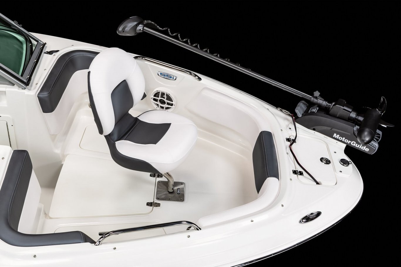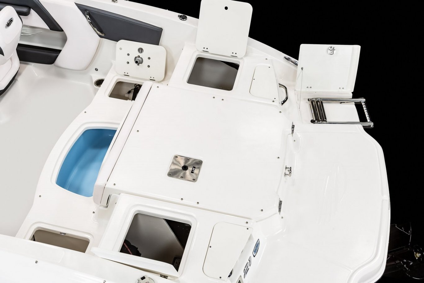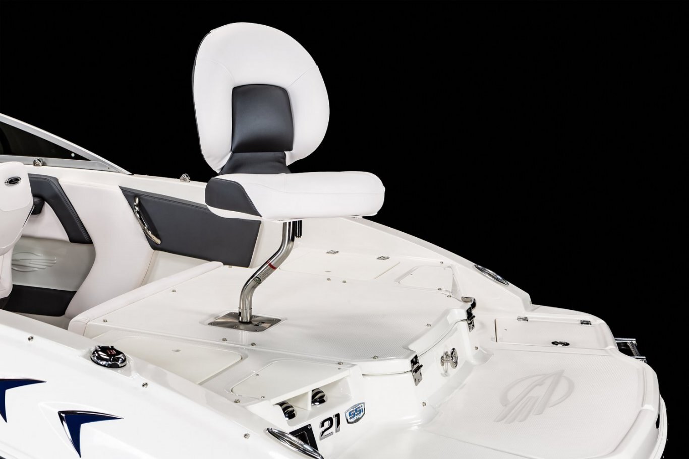 The 21 Ski & Fish SSi combines the best of everything. Larger casting platforms, abundant storage, and flexible seating cockpit design. Options you won't want to be without include snap-in SeaDek flooring, a bow walk-thru door, a fish finder, and a swim platform logo mat. Additionally, you can upgrade either one or both of the standard bucket seats to an ultra-comfort pedestal complete with a flip-up front bolster. Anglers will love the protected rod storage and 70-quart livewell.