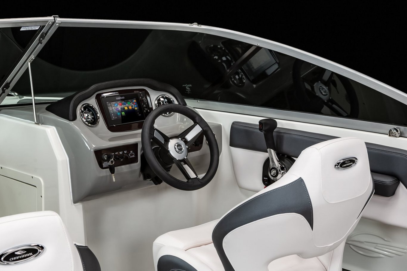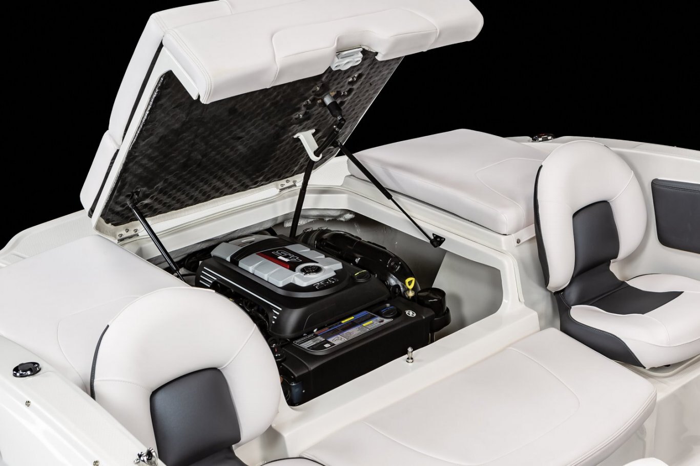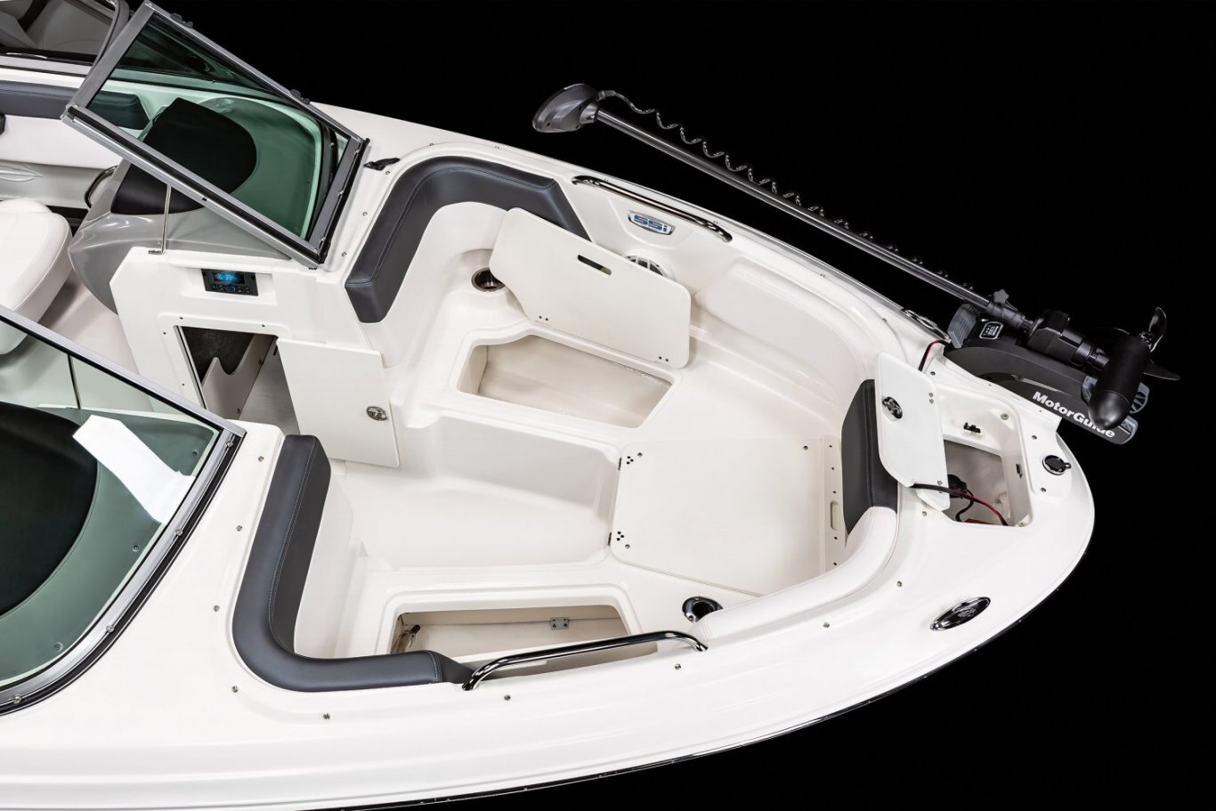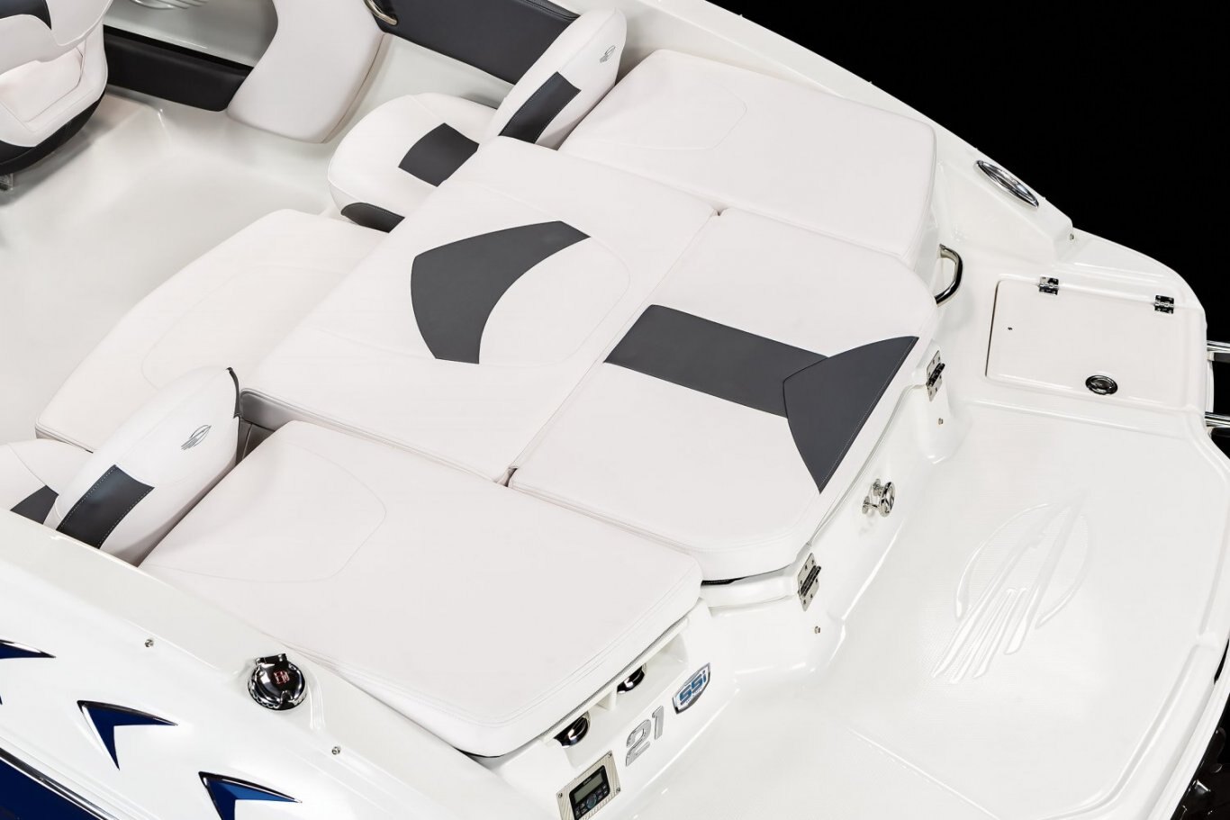 The 21 Ski & Fish SSi combines the best of everything. Larger casting platforms, abundant storage, and flexible seating cockpit design. Options you won't want to be without include snap-in SeaDek flooring, a bow walk-thru door, a fish finder, and a swim platform logo mat. Additionally, you can upgrade either one or both of the standard bucket seats to an ultra-comfort pedestal complete with a flip-up front bolster. Anglers will love the protected rod storage and 70-quart livewell.