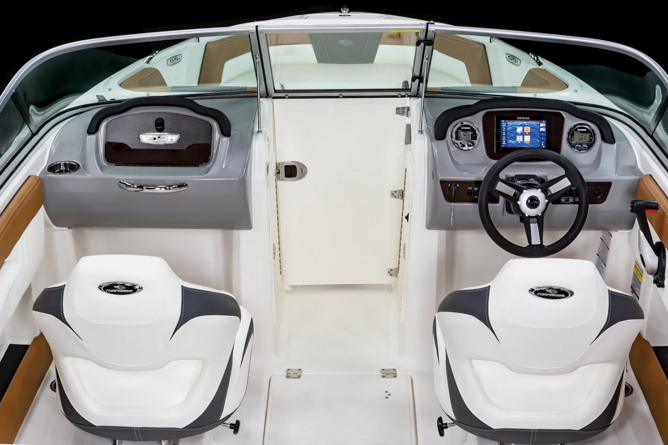 • Cockpit Layout: Two Bucket Seats (Slide and Swivel) with Logo Badging, Rear Bench Seat and Aft Hinged Sundeck with Walk-Thru, Lounge Position and Aft facing seat