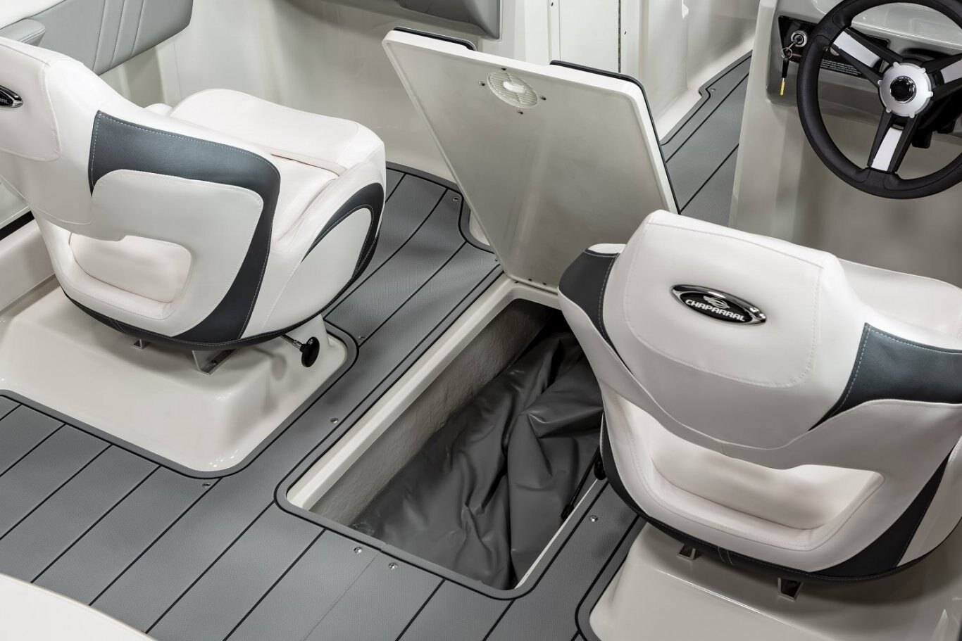 - Ultra Comfort Helm Seats with Flip-Up Bolsters- Port and Starboard