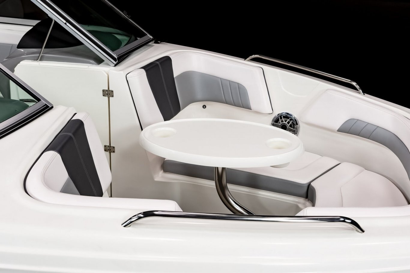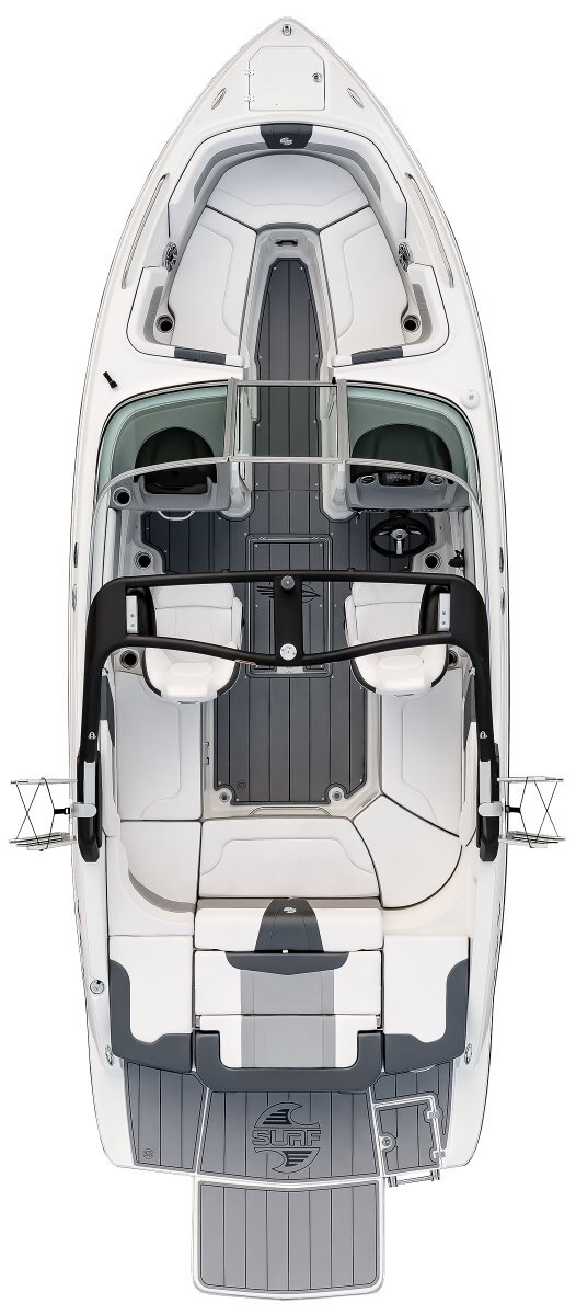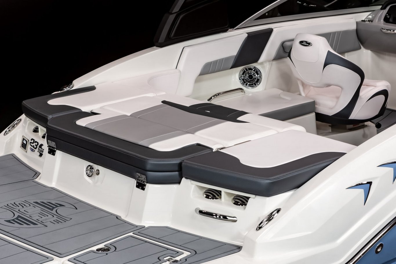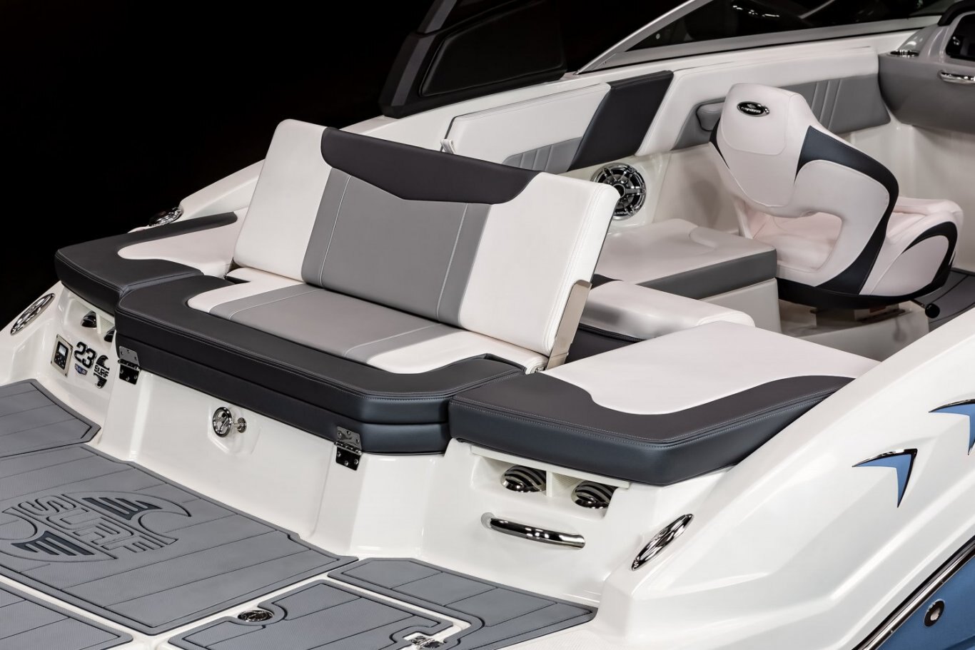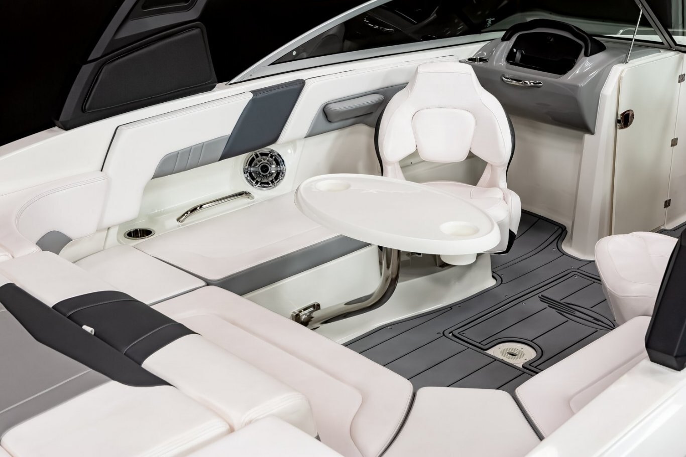 - Cockpit Layout: Two Bucket Seats (Slide and Swivel) with Logo Badging, U-Shaped Seating and Aft Hinged Sundeck with Walkthrough, Lounge Position and Aft Facing Seat