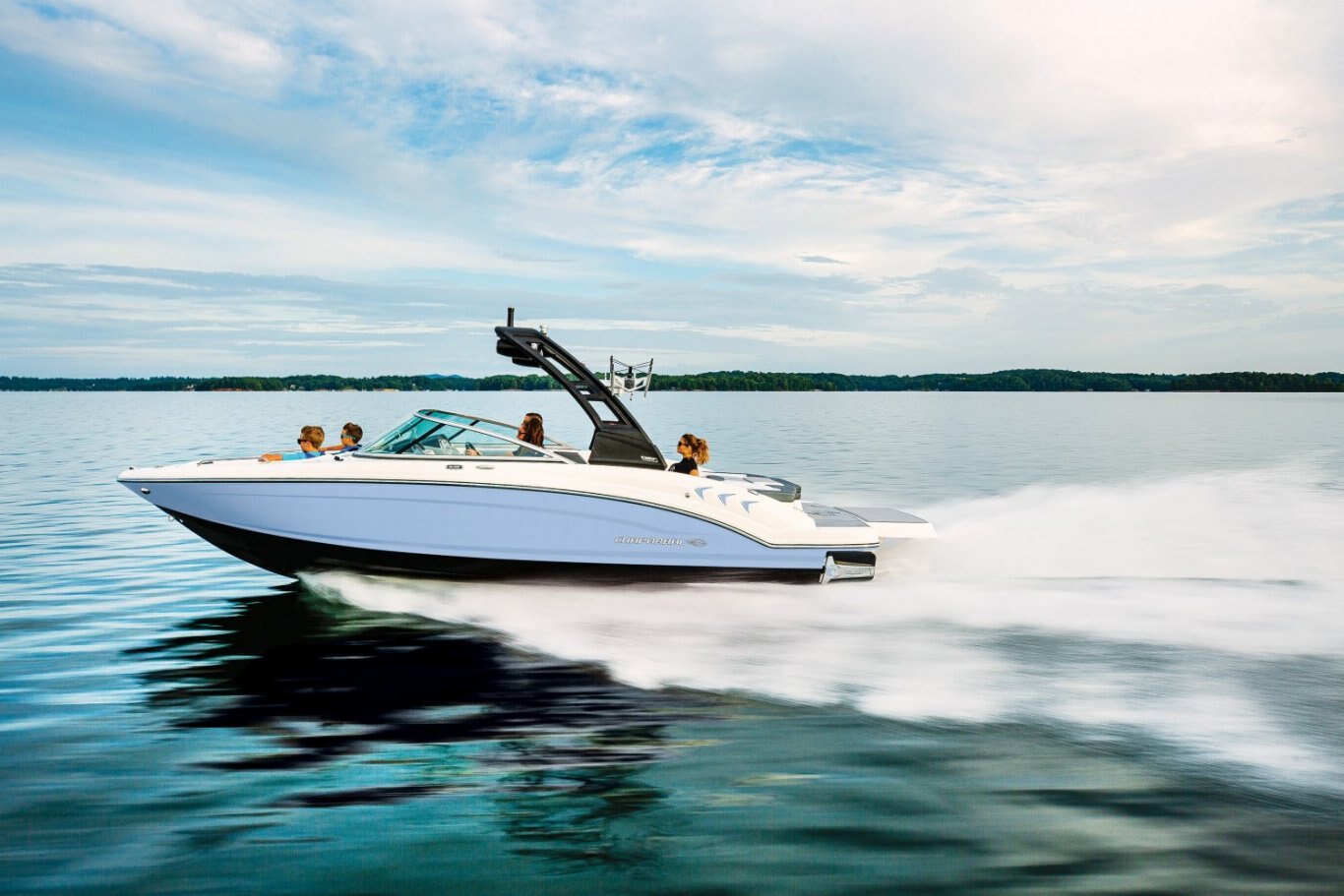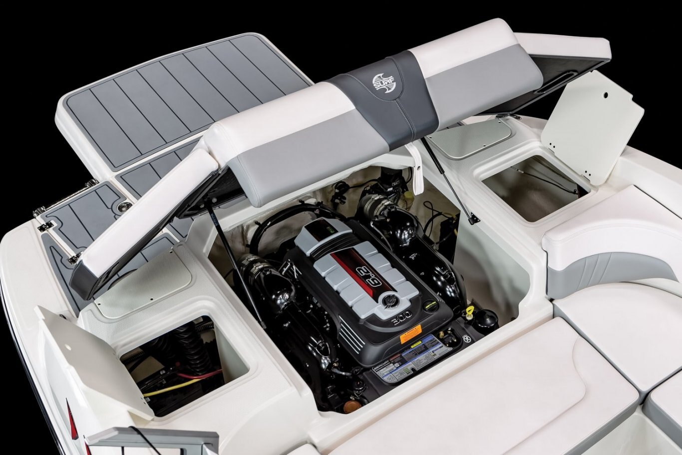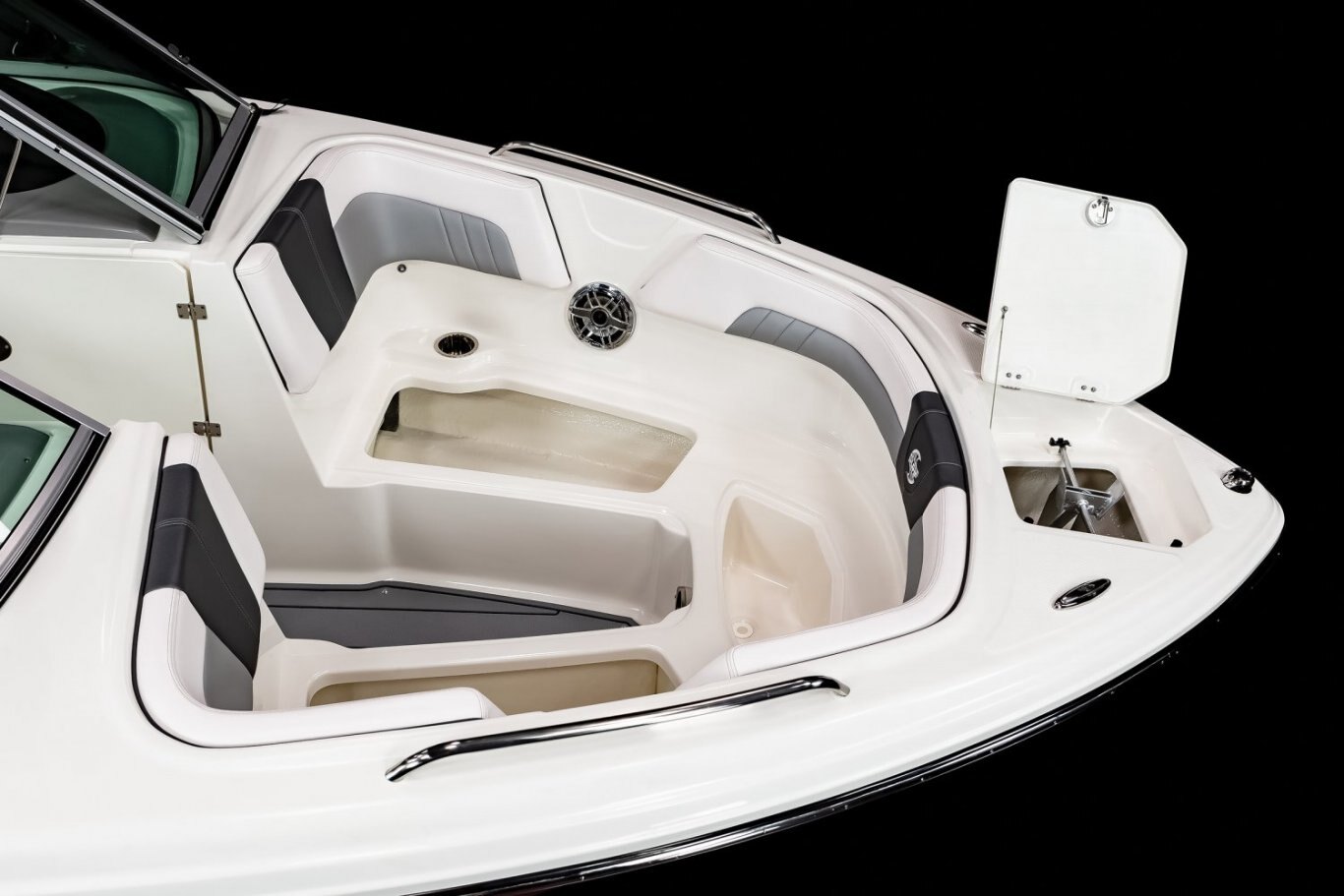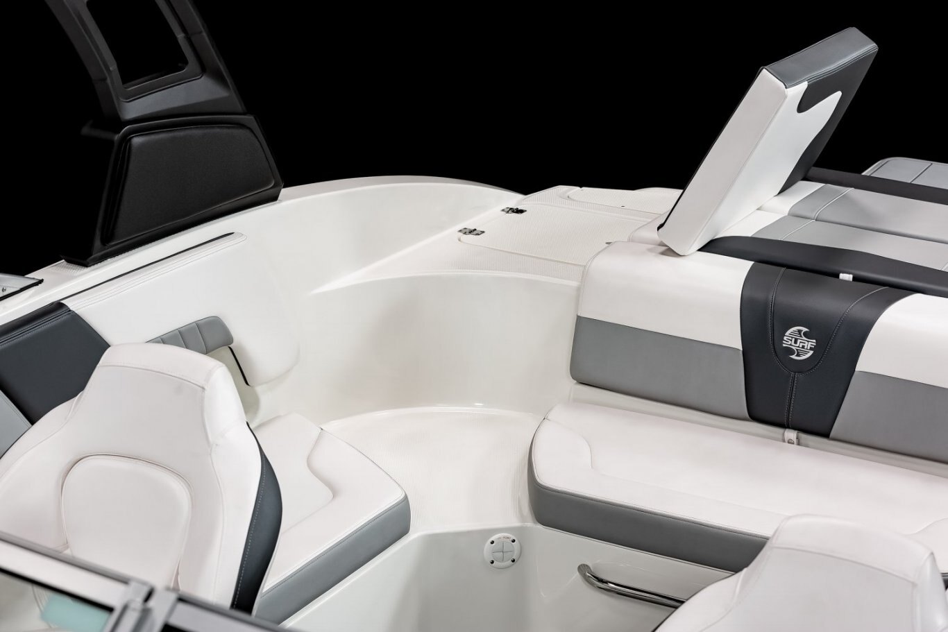 - Cockpit Layout: Two Bucket Seats (Slide and Swivel) with Logo Badging, U-Shaped Seating and Aft Hinged Sundeck with Walkthrough, Lounge Position and Aft Facing Seat