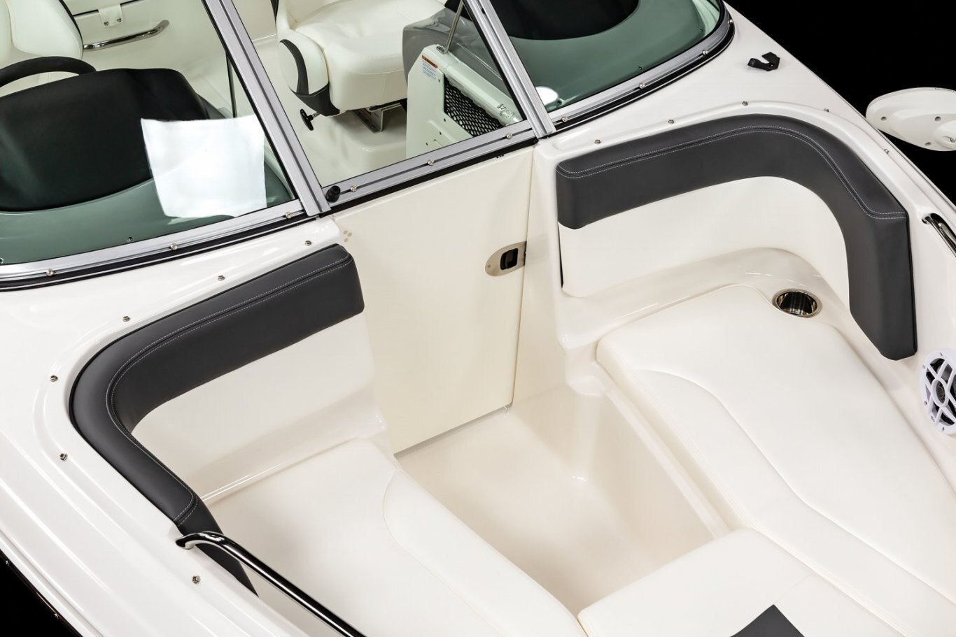 Set against an all-new helm design featuring a custom hand-stitched brow, the touchscreen Simrad GO7 will give you all the information you need for a great day on the water. A responsive engine cluster, detailed map software, and split-screen functionality make this display the perfect accessory for the 21 SSi OB Ski & Fish.