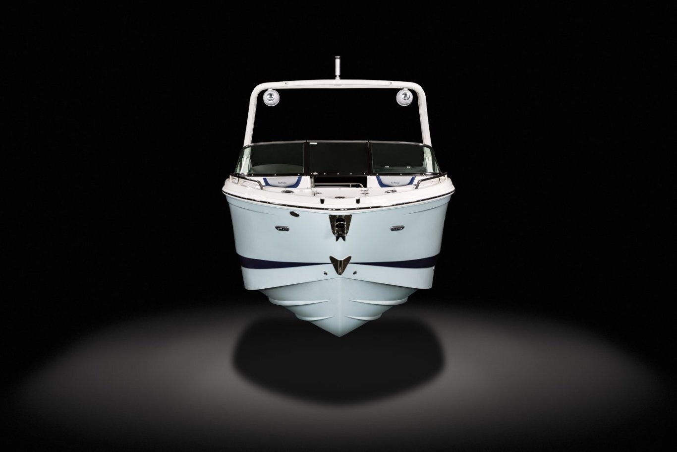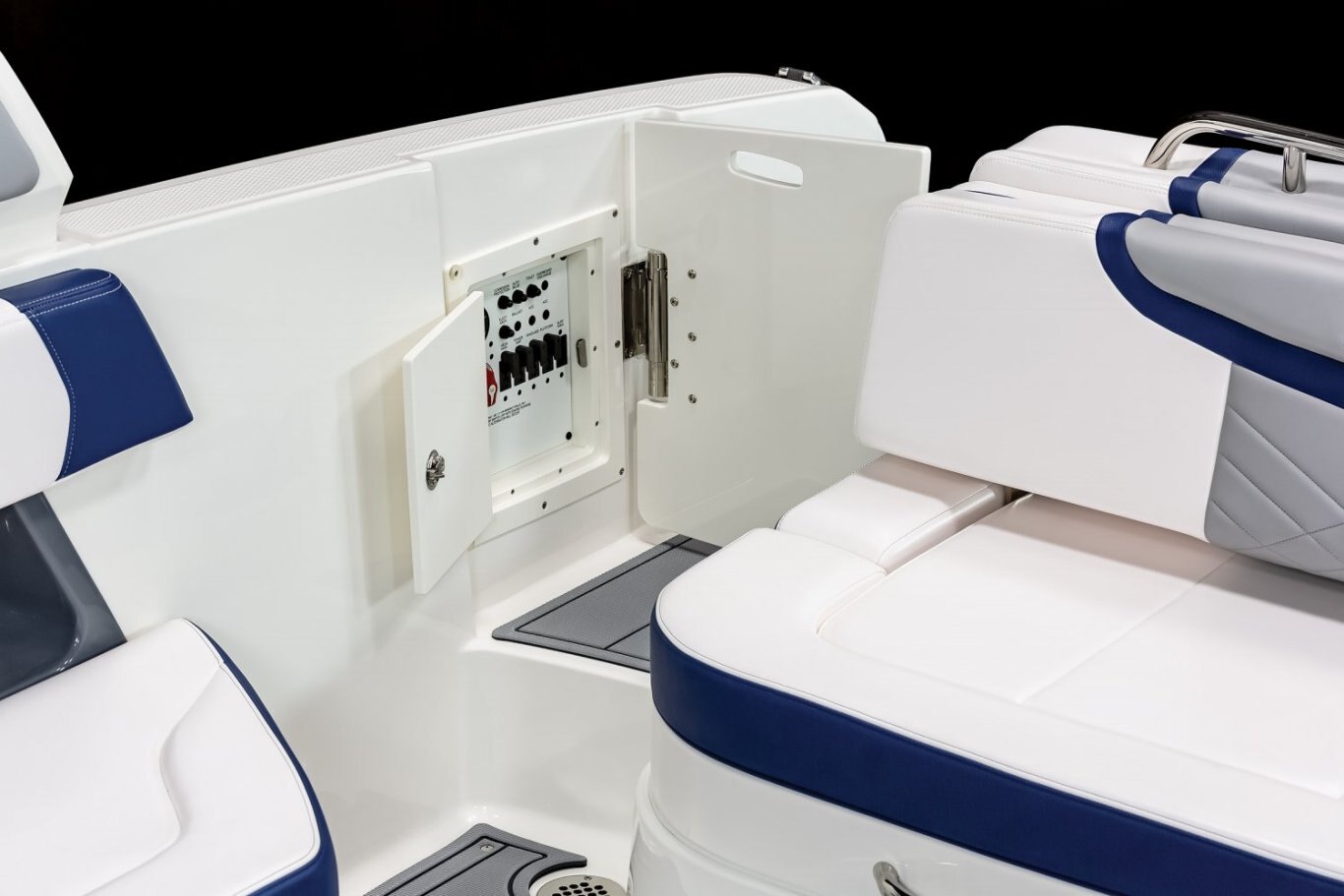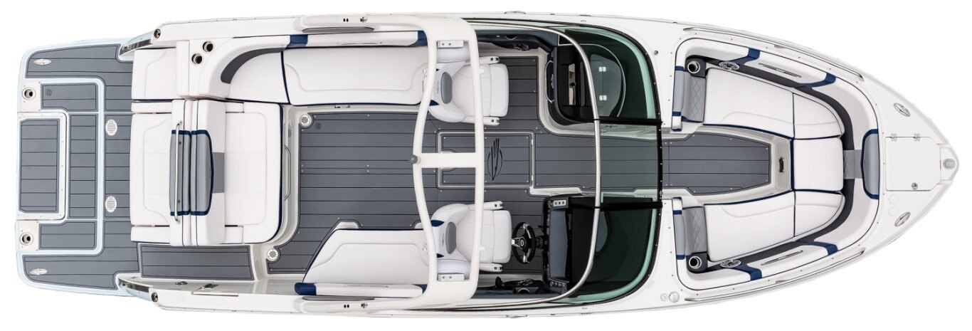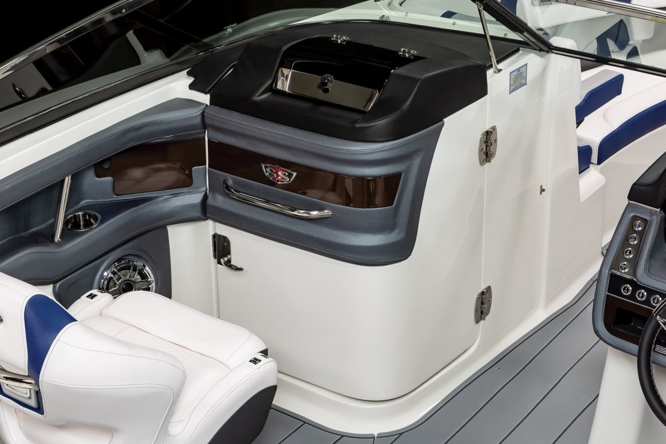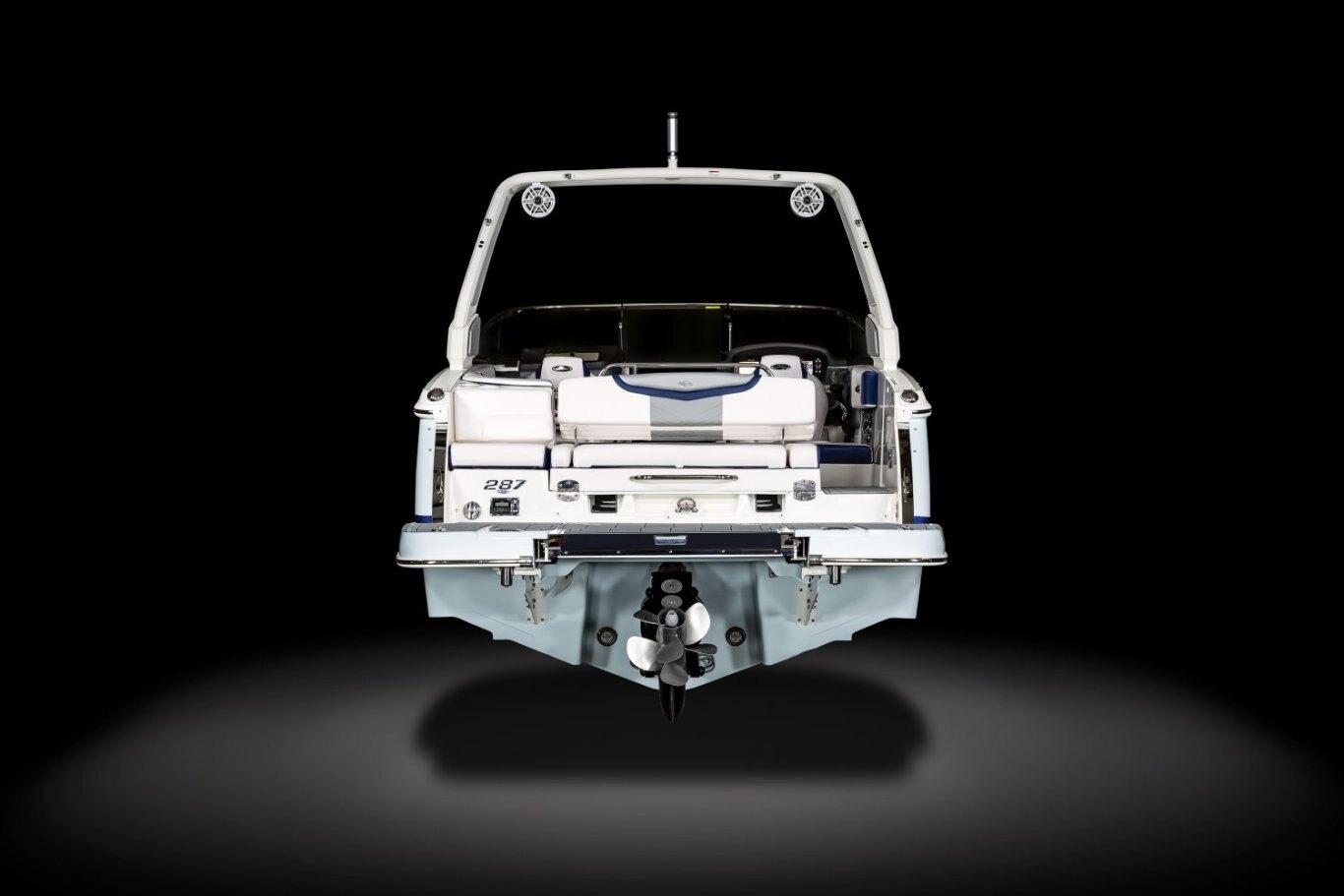 Meet the 287 SSX, with an overall length of 28', this vessel is rapidly becoming a trendsetter within the boating world. The standard Infinity Power Step swim platform makes watersports setup a breeze. Sporting an open and spacious cockpit design outfitted with hinged storage and hand-stitched vinyl seating along with dual 7" touch screen displays embedded in the helm, the 287 SSX is here to make a statement in luxury boating.