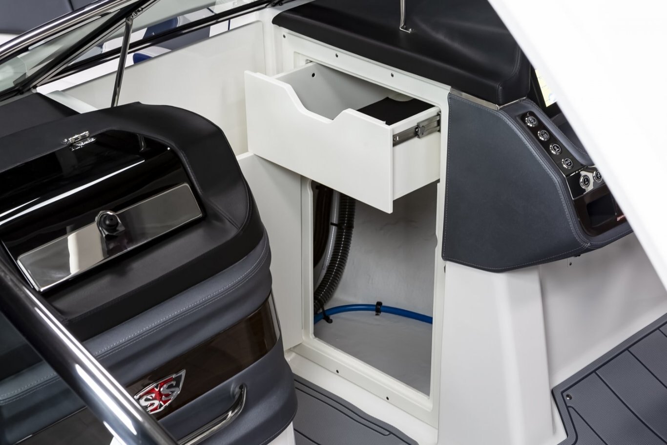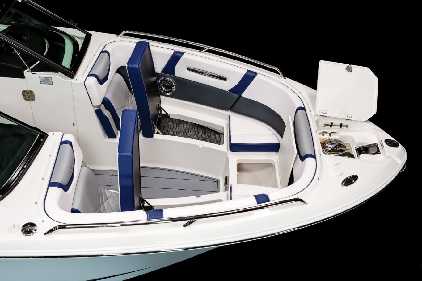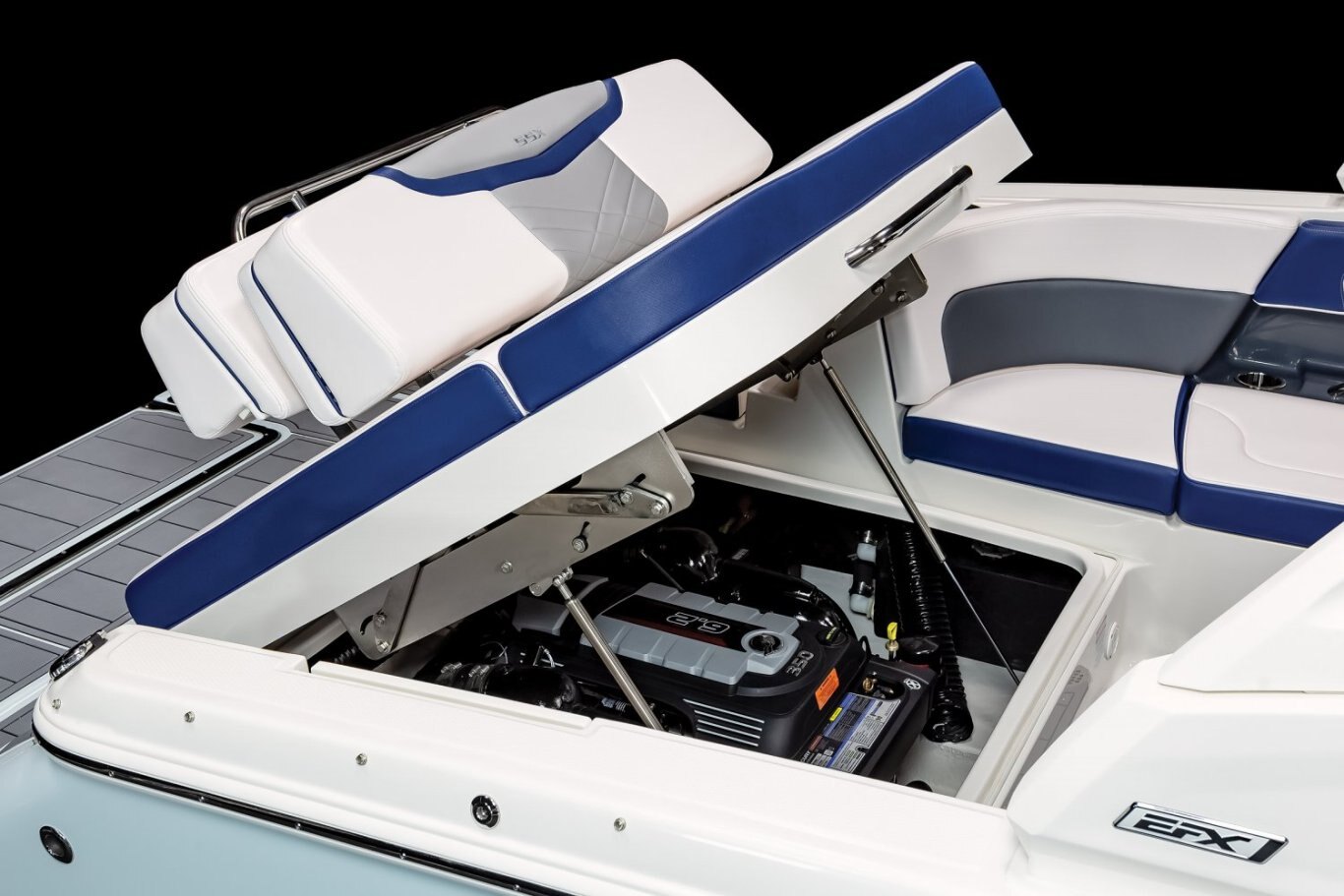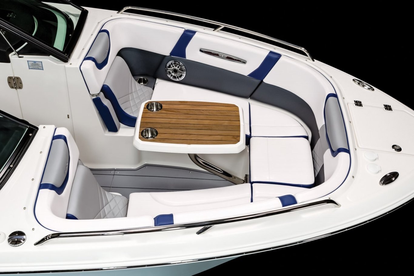 Meet the 287 SSX, with an overall length of 28', this vessel is rapidly becoming a trendsetter within the boating world. The standard Infinity Power Step swim platform makes watersports setup a breeze. Sporting an open and spacious cockpit design outfitted with hinged storage and hand-stitched vinyl seating along with dual 7" touch screen displays embedded in the helm, the 287 SSX is here to make a statement in luxury boating.