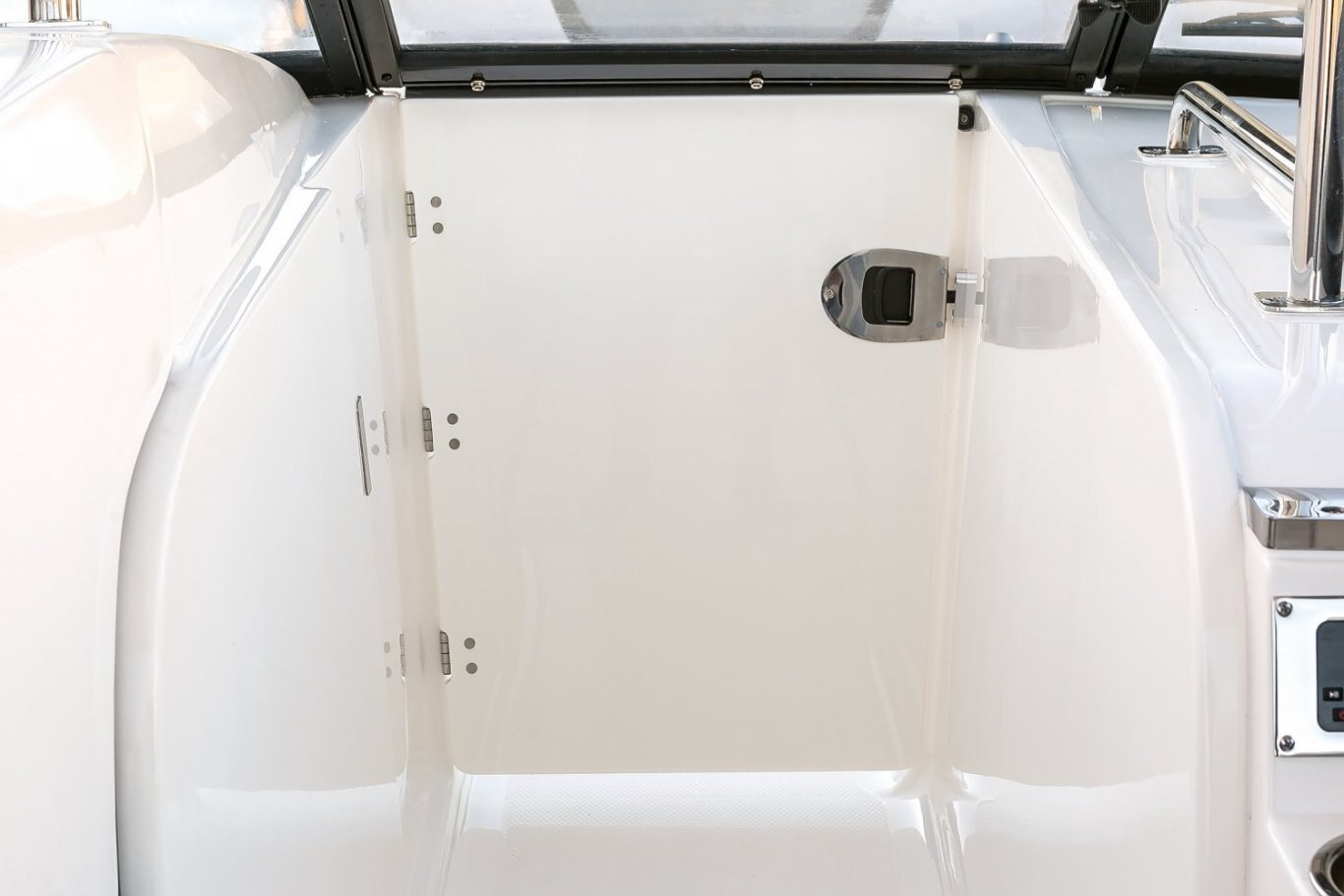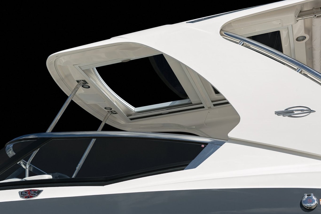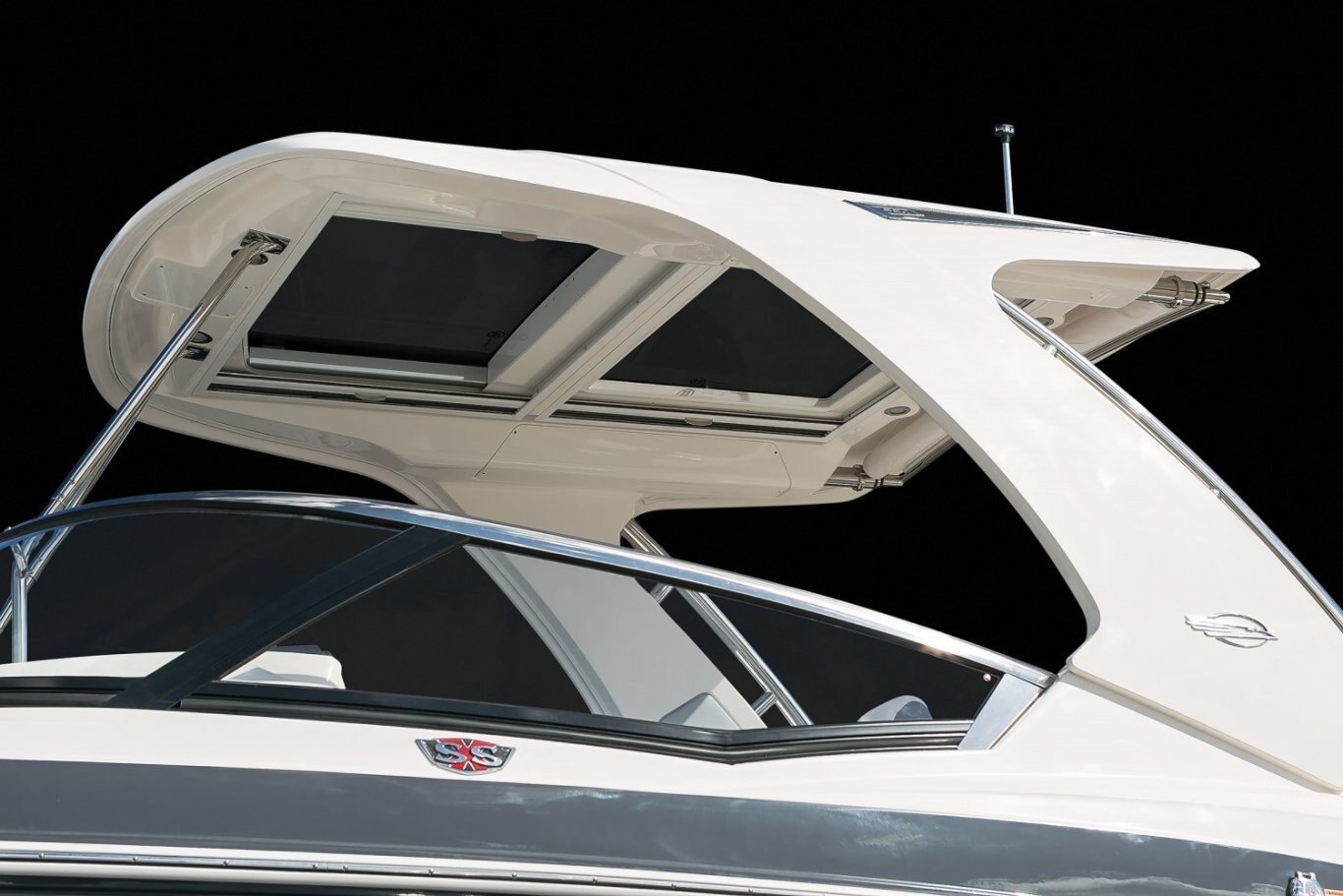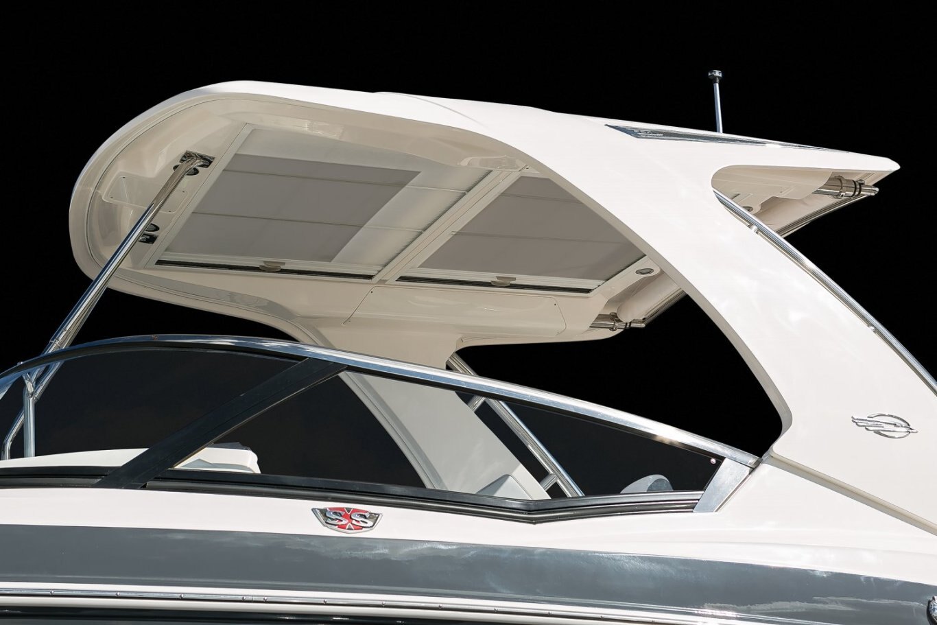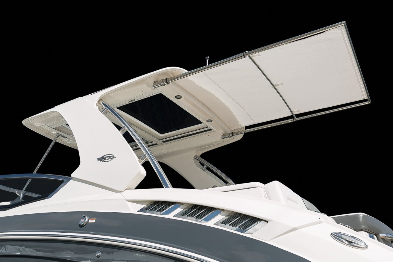 STANDARD FEATURES Canvas Package with Hardtop Includes: Windscreen, Side Curtains and Color Coordinated Storage Bag (Sunbrella) Fiberglass Hardtop, Overhead LED Lighting, and Stainless Steel Grab Rails Shipping Cover