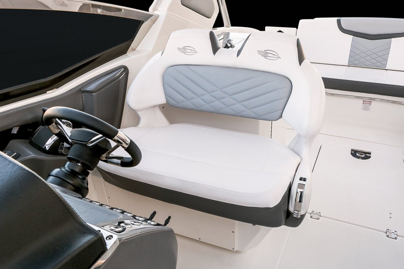 The 2023 347 SSX comes standard with twin 9" touchscreen displays with Chartplotter, GPS, WiFi, Insight Charts, Transducer, and Engine Data functions. Full digital instrumentation completes the helm with fog-resistant glass lenses, brushed aluminum faces, and stainless steel bezels. Our luxurious, leather-wrapped steering wheel is sure to make every voyage an enjoyable one.