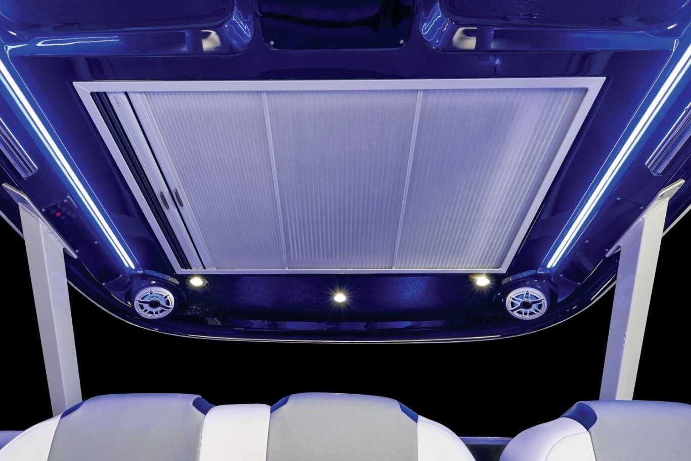 STANDARD FEATURES Fiberglass Hardtop with Bonded Skylight, Oversized Powder- Coated Frame (White or Black) and Overhead LED Lighting Hardtop Tower Inserts: Black, White, Biscayne Blue, Stealth Gray, Seafoam Green, Ice Blue, Steel Blue and Alloy Gray Shipping Cover