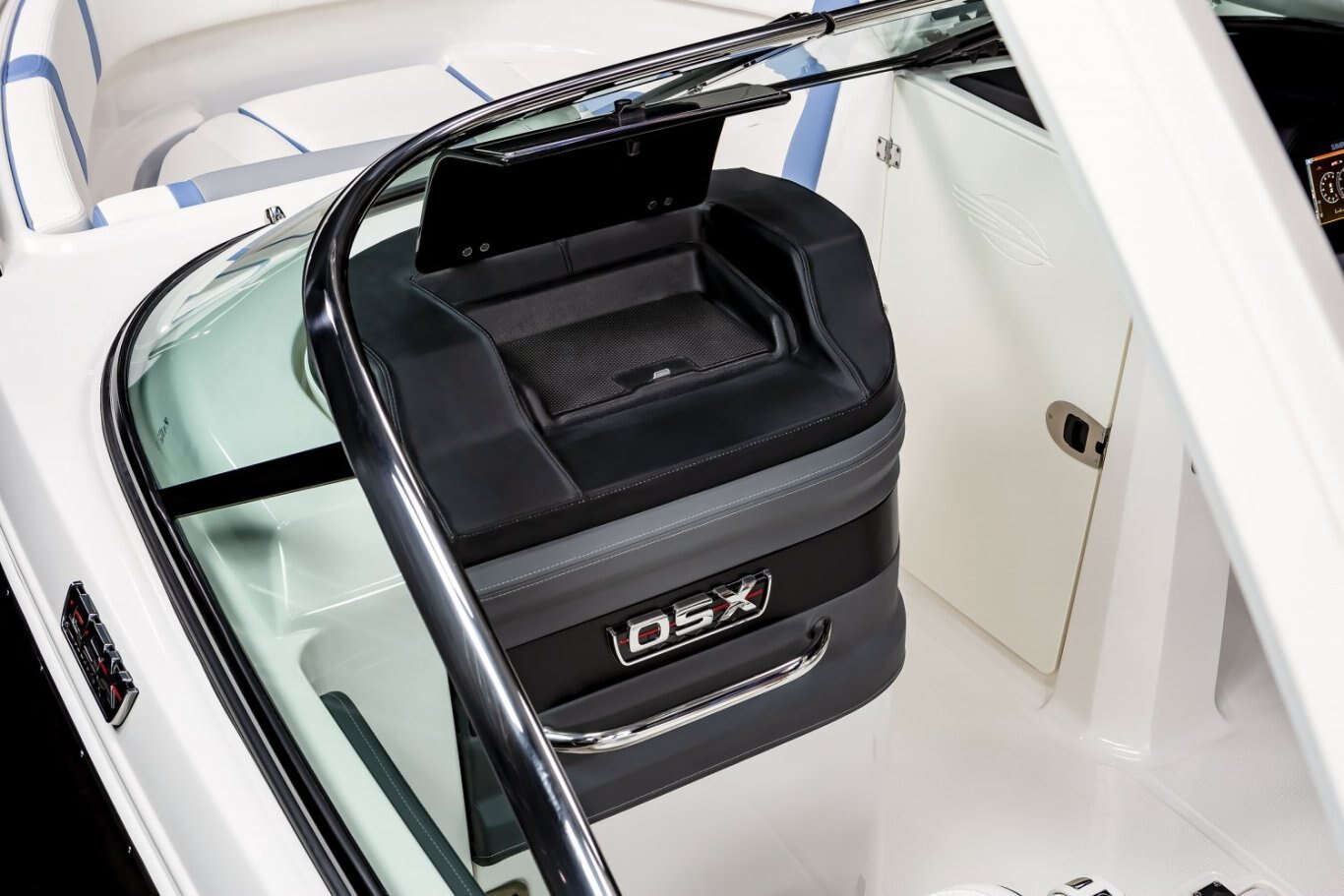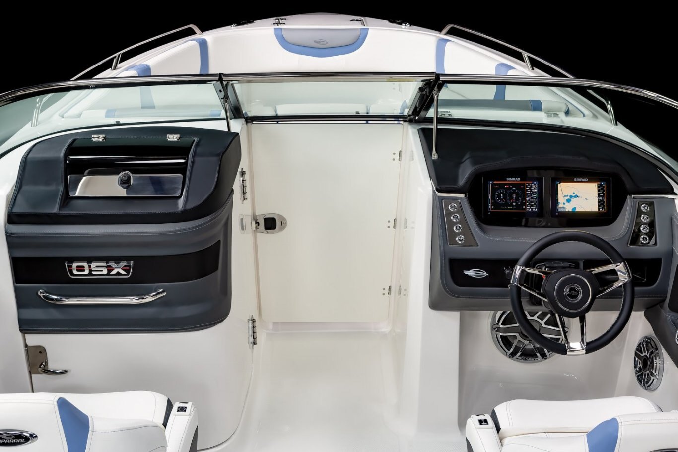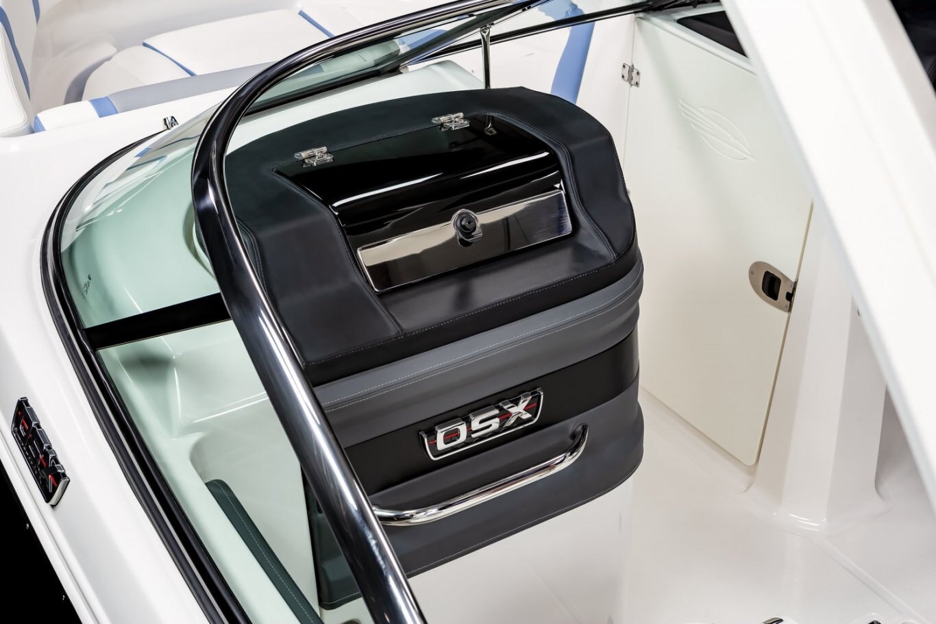 The 250 OSX was built with comfort in mind. The thick bolster cushions, deep bow seating, flip-up bolsters at the helm, and stainless steel grabrails throughout make this a safe and comfortable ride for the whole family.